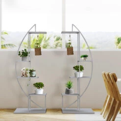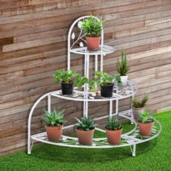 Outsunny 5 Tier Metal Plant Stand, Half Moon Shape Curved Flower Pot Holder Shelf, 2 Pack, Black