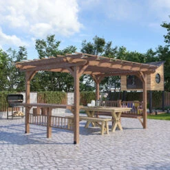 Outsunny 13′ X 10′ Outdoor Louvered Pergola Patio Aluminum Gazebo With Adjustable Roof, Grey
