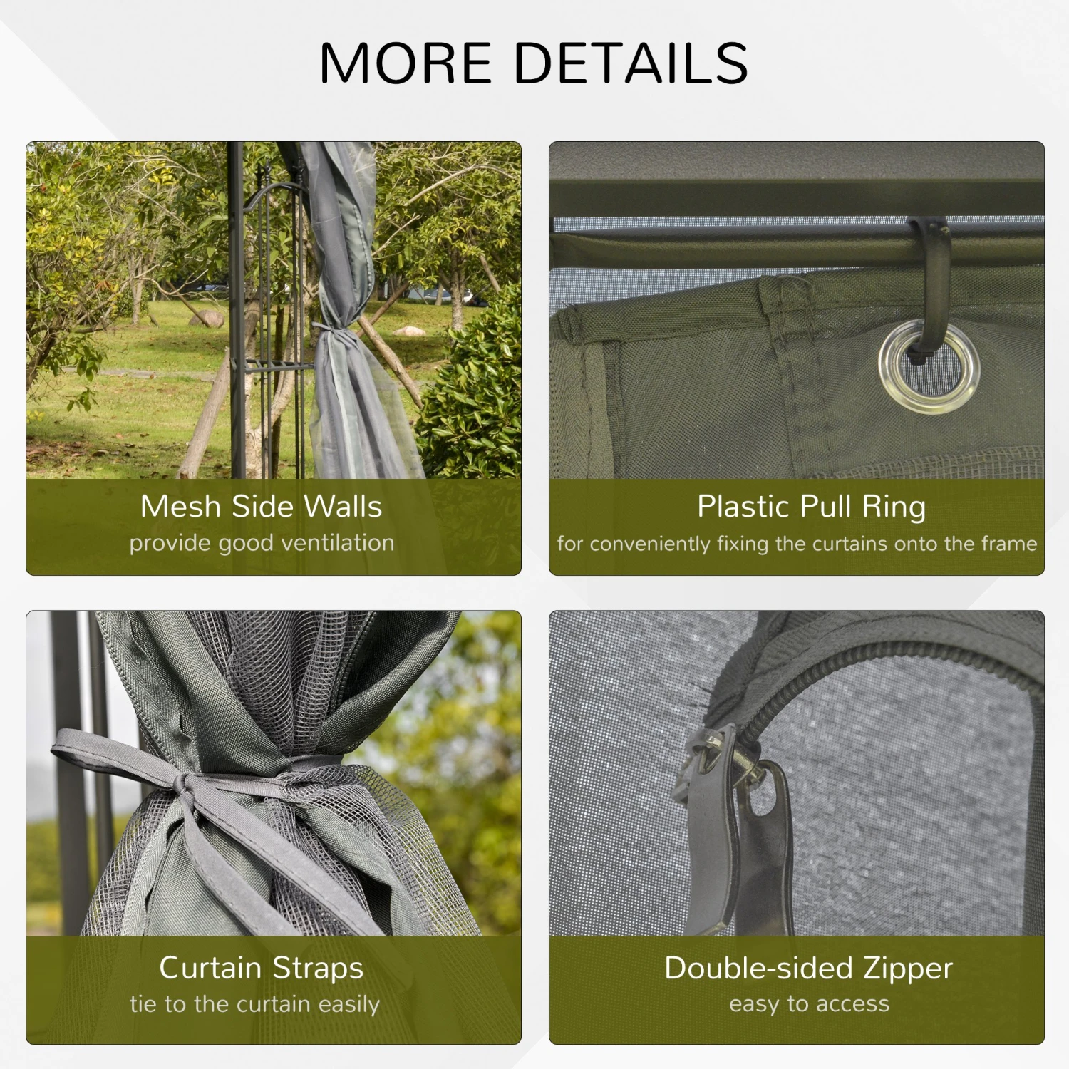 - – Netting sidewalls to keep out winged annoyances