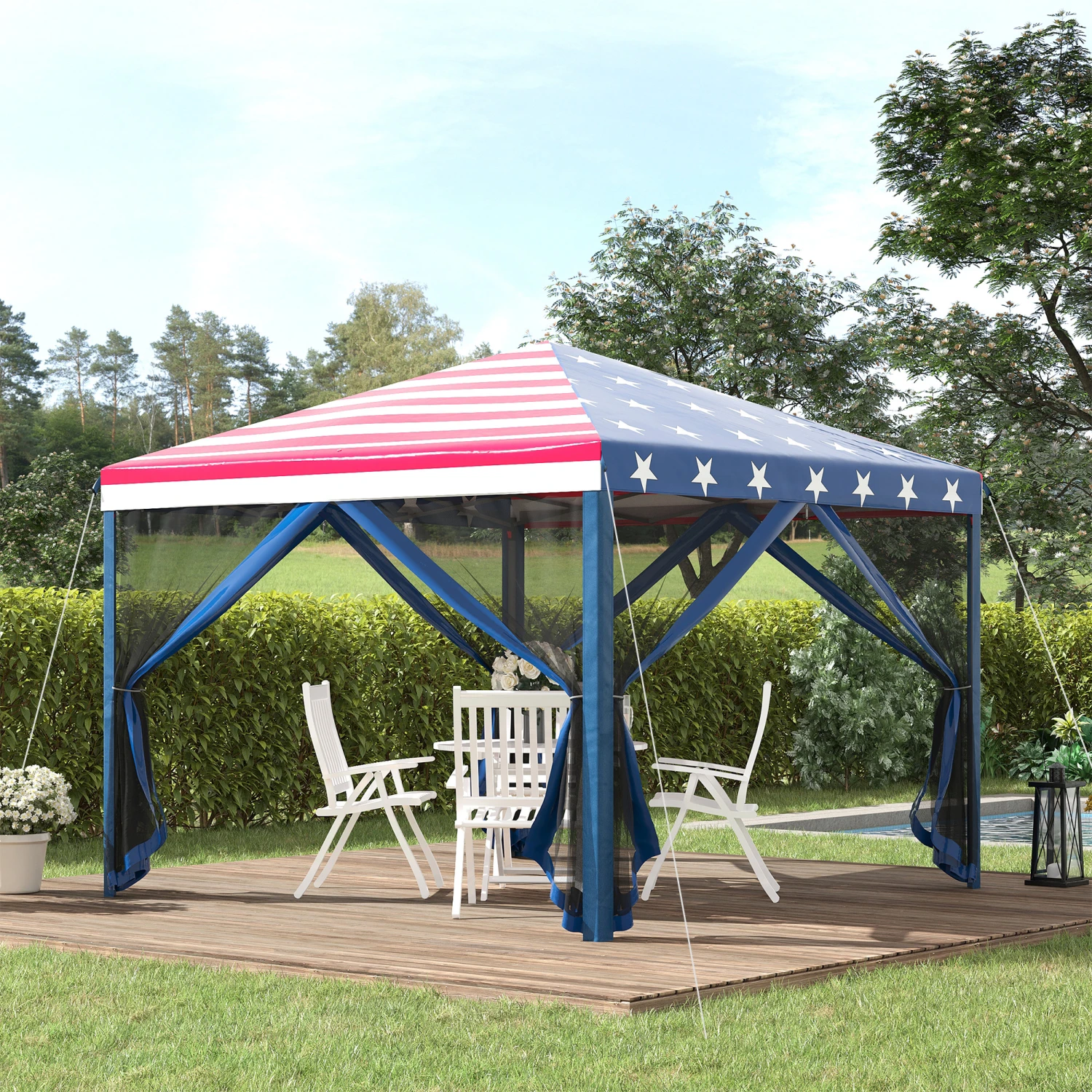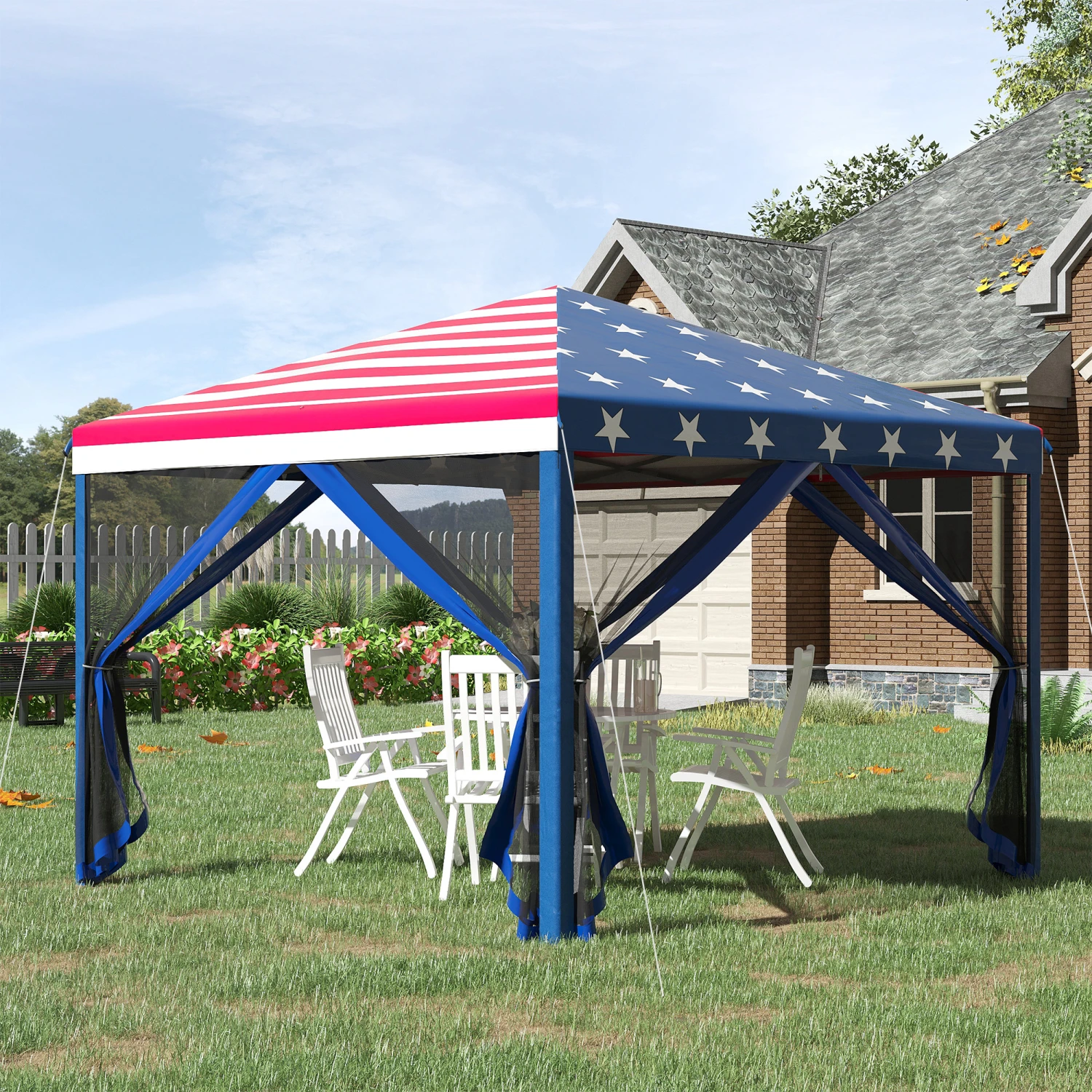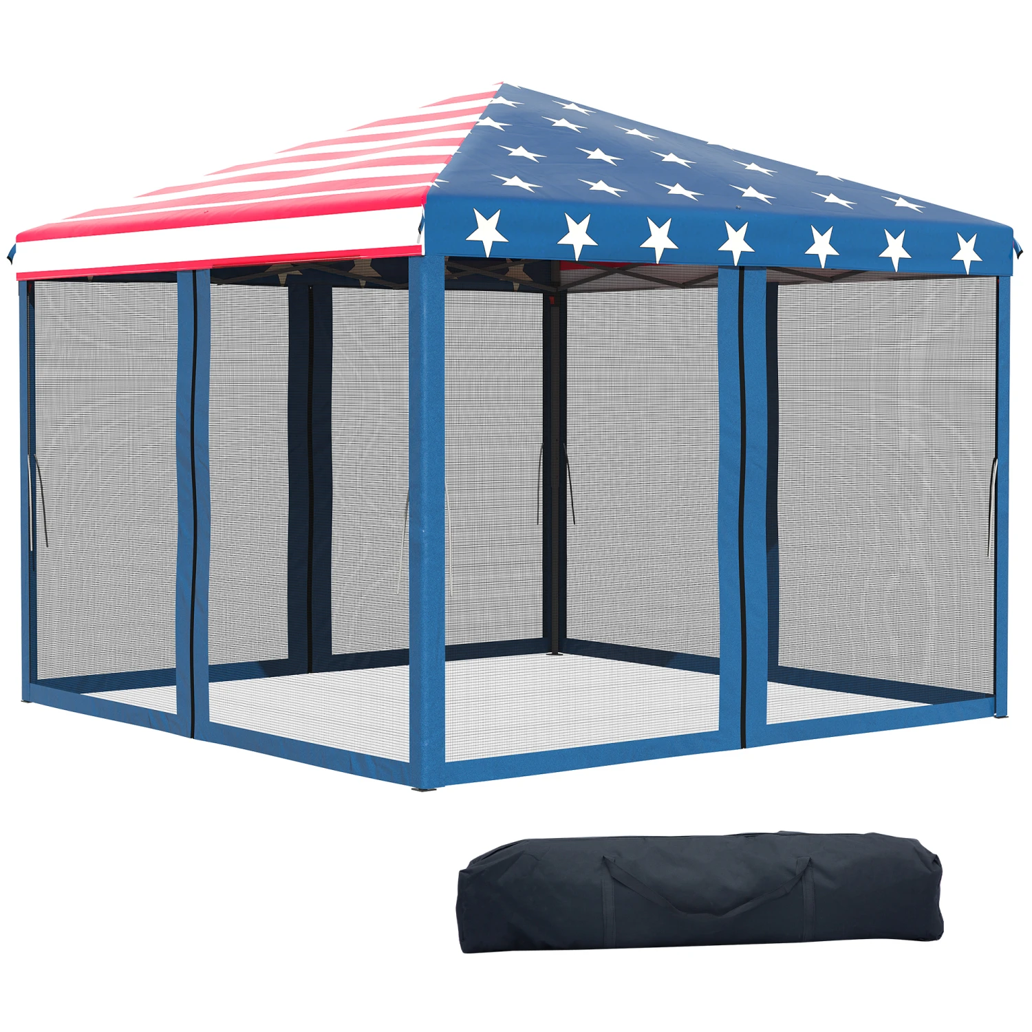 Our 10’x 10′ easy-up canopy is easy to carry and sets up fast. Pop-in with a convenient carrying bag. Pop-up; unfold the frame to provide shaded space under a canopy, free from sunburns. The sidewalls keep winged intruders out but still let you enjoy the breeze. When you’re done for the day, the frame folds down, and its carrying bag stores in small spaces, fitting in the trunk to take it on the road. Whether it’s for an outdoor event or your very own vendor’s tent, Outsunny has you covered.