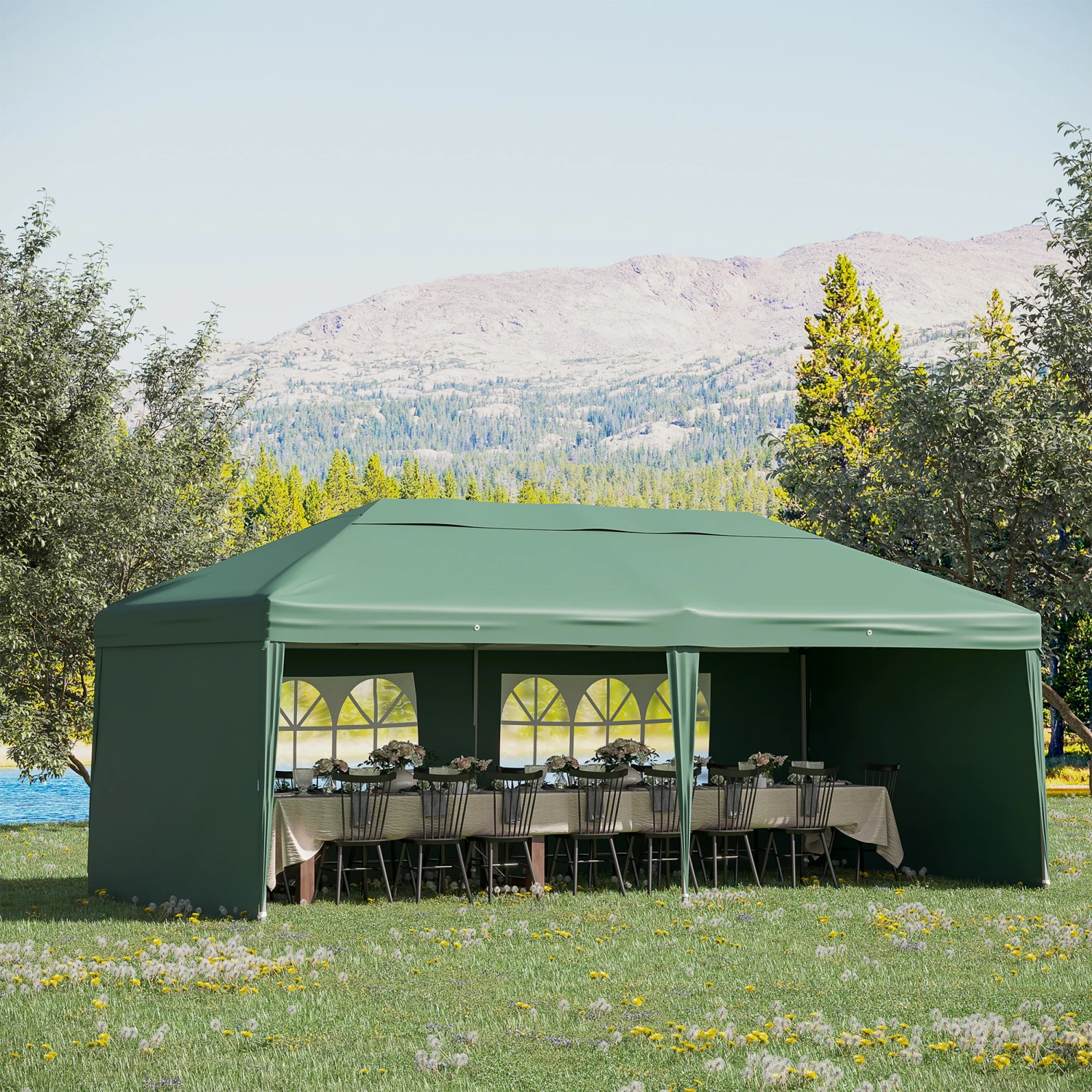Transform an ordinary gathering into the extraordinary one with this fun and practical Outsunny easy up canopy. The sidewalls of our pop up tent offer an open-air feel while at the same time providing excellent protection. The breathable polyester roof helps block harmful UV rays without fading in the sun. Plus, the included anchor kit helps you mount it to any surface.