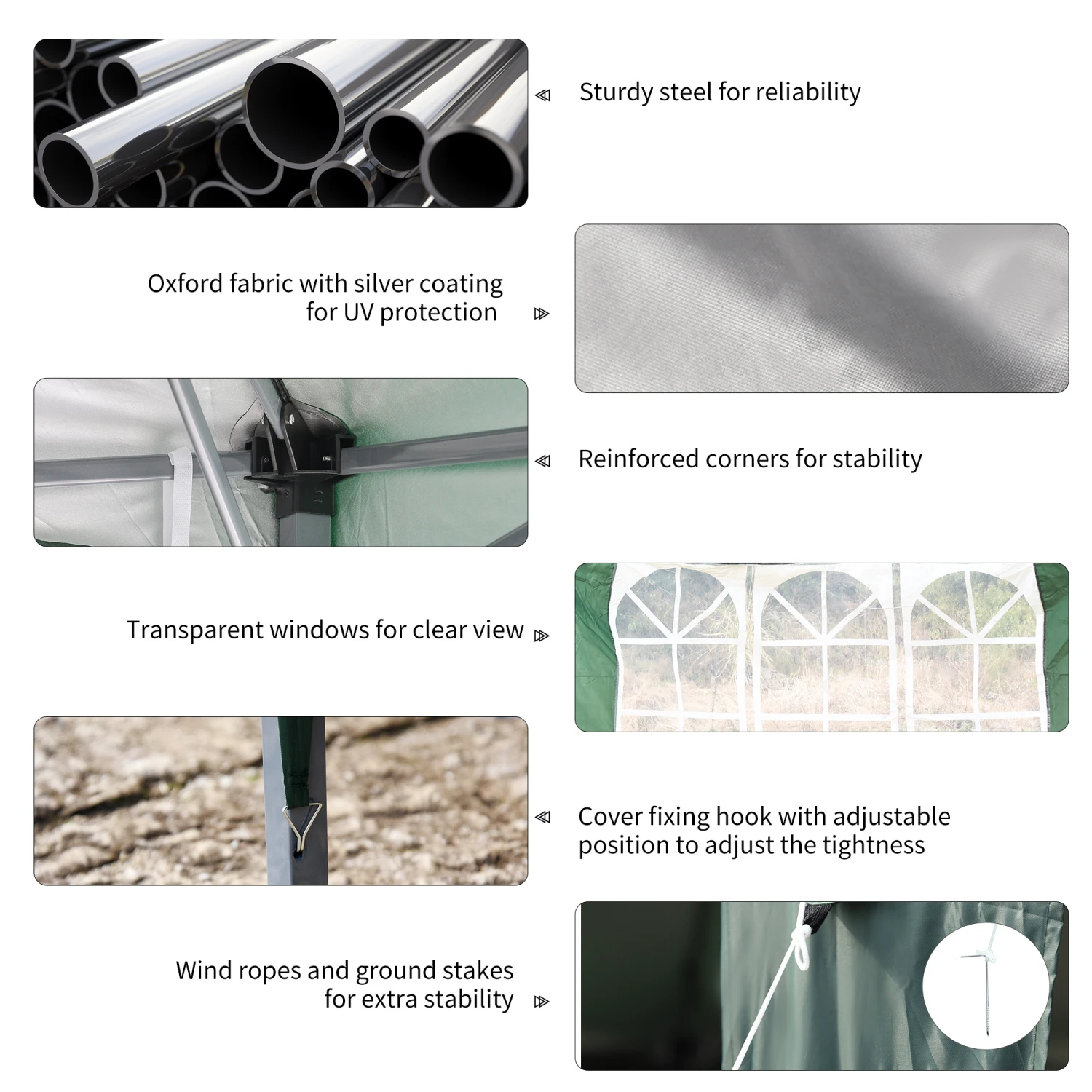 - – Comes with guy ropes and stakes for added stability