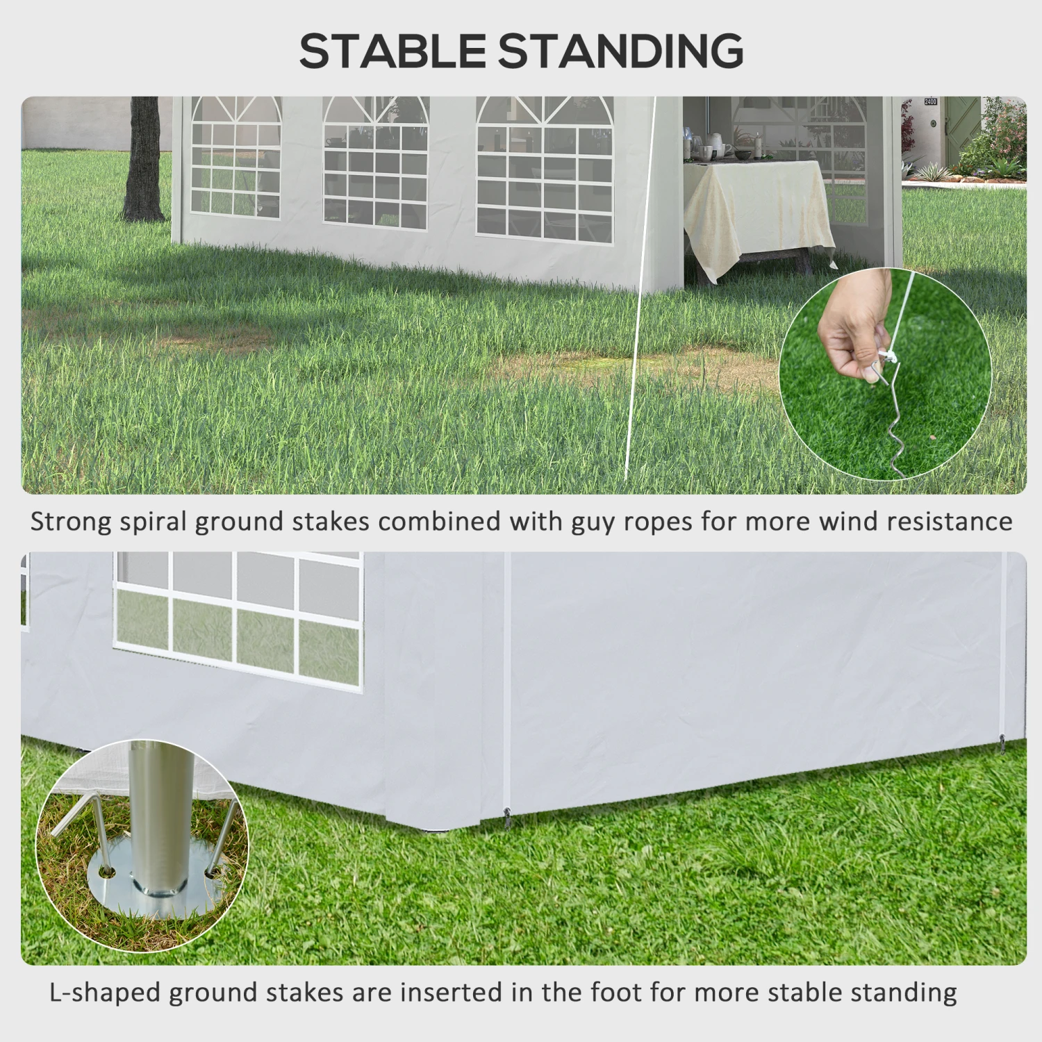 - – Stakes and ropes to reinforce the structure against the wind