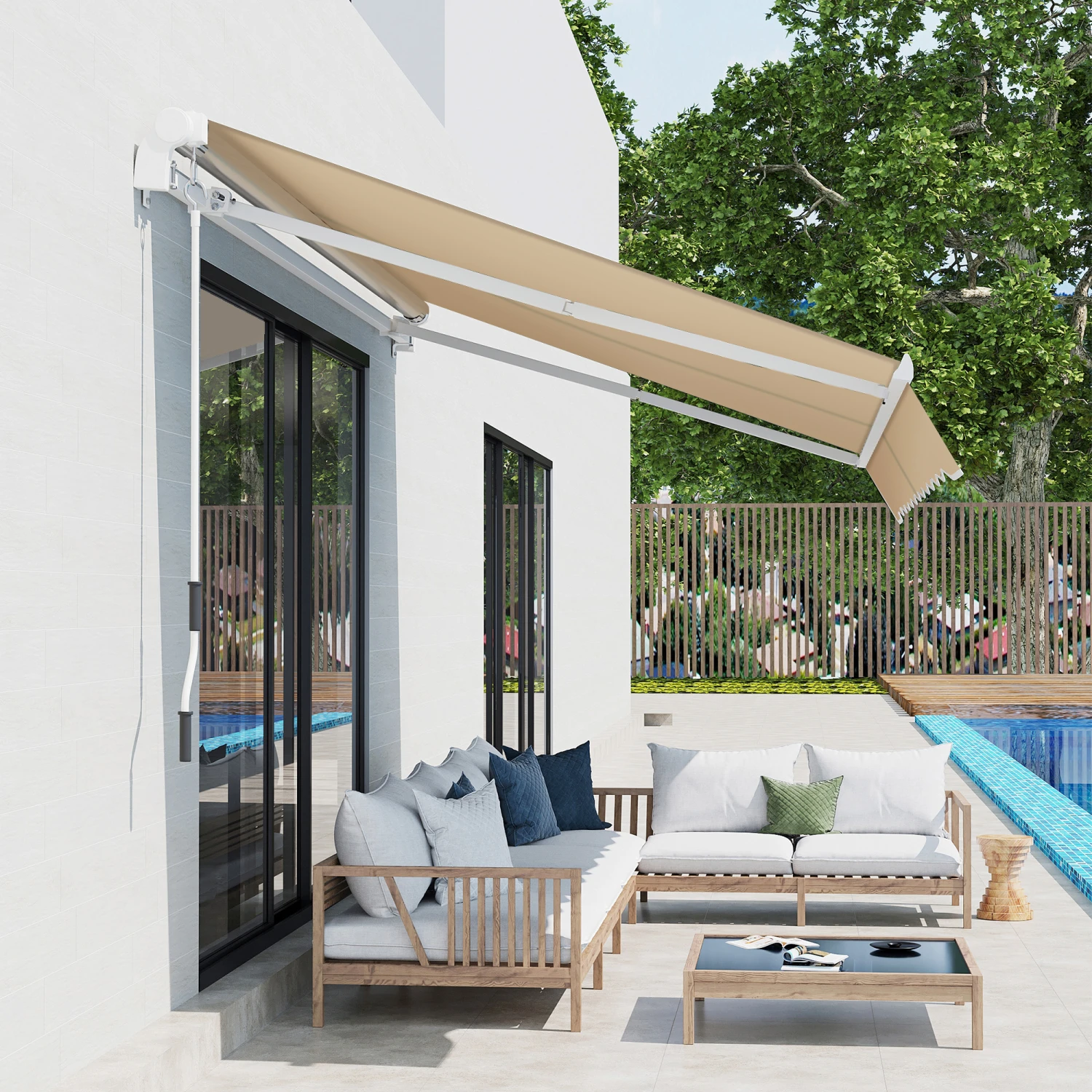 With a sturdy aluminum and steel frame, Outsunny retractable patio awnings offer outdoor shade. Our awnings create a cool, comfy place on your patio and protect you from UV rays. The reinforced frame and water-resistant polyester fabric make our window awnings superior in material and excellent in workmanship. Our door awnings let you enjoy protection and an accent piece at a reasonable cost. They easily mount on the wall with the included accessories. Get out, get comfy, get Outsunny.