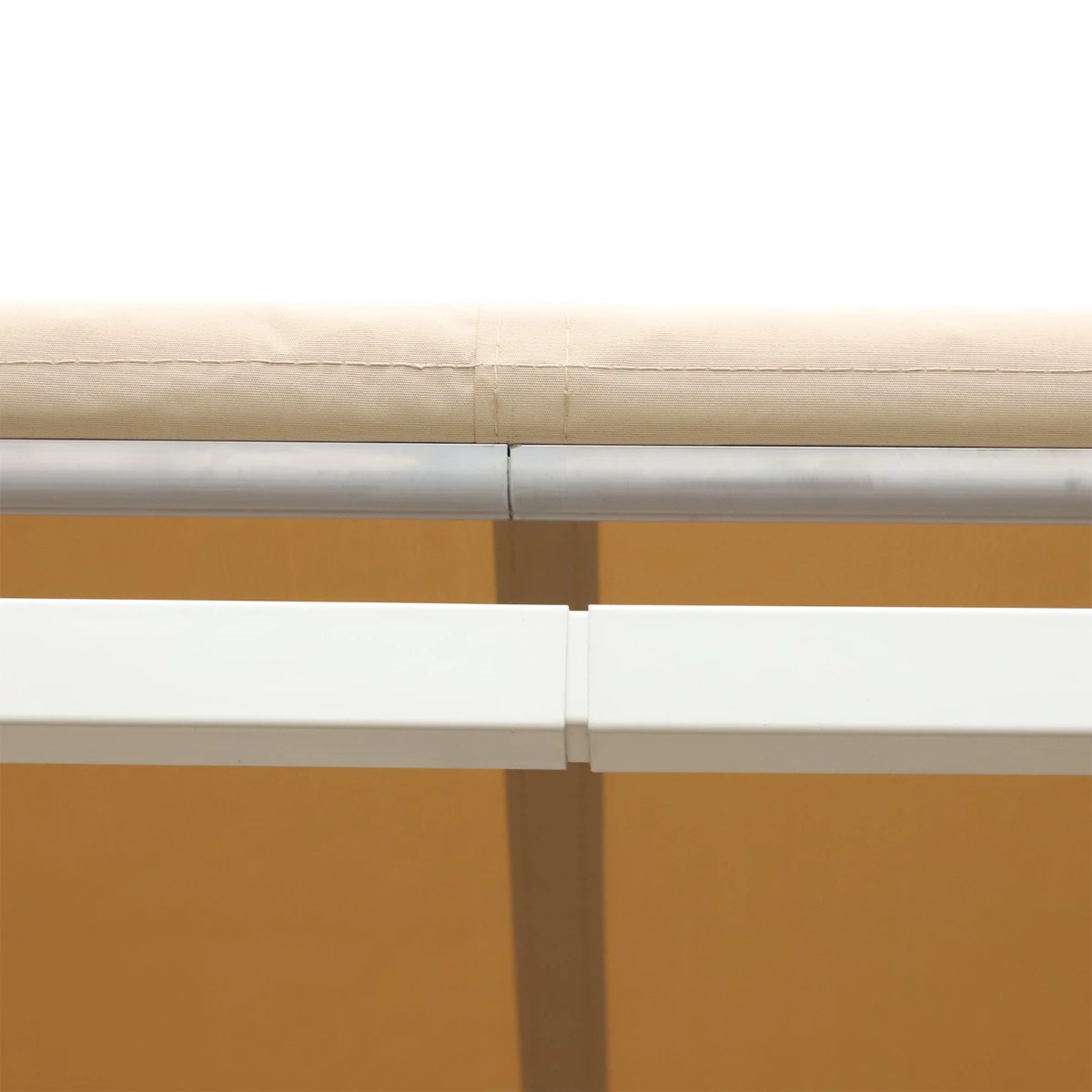 - – Polyester fabric supported by two retractable arms, a reel, and a front support bar