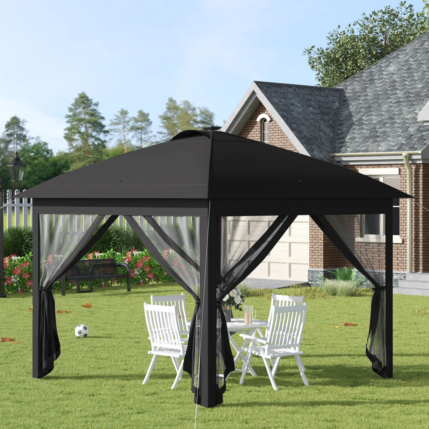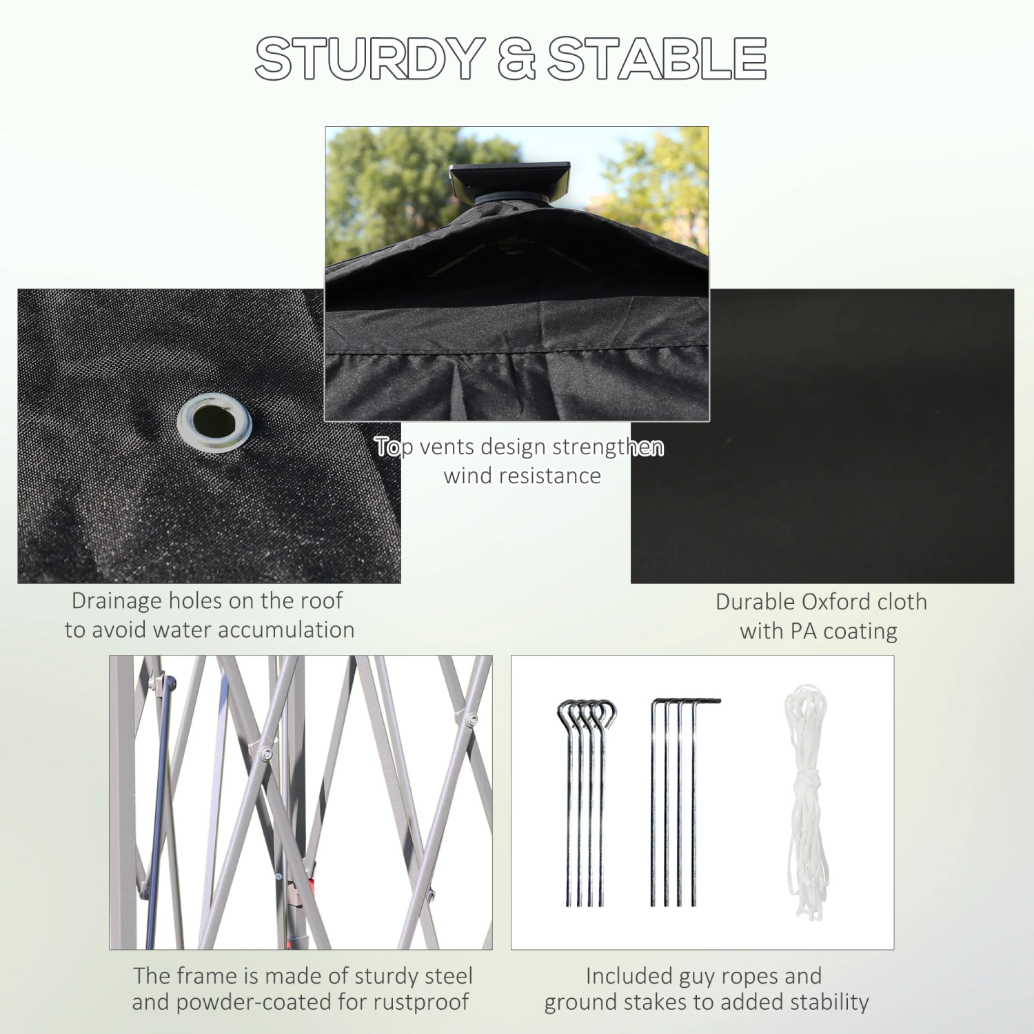Do you love hosting parties at your house but don’t want your guests to have to sit in the direct sunlight? This Outsunny easy up canopy can keep you out of the sun, light up your night and keep your guests comfortable. Fire up the BBQ and invite family and friends over to sit without battling the elements, as the mesh sidewalls offer protection from unwanted dinner gusts when you sit down to eat. Be the happening place for all the shindigs with this Outsunny portable gazebo with sidewalls.