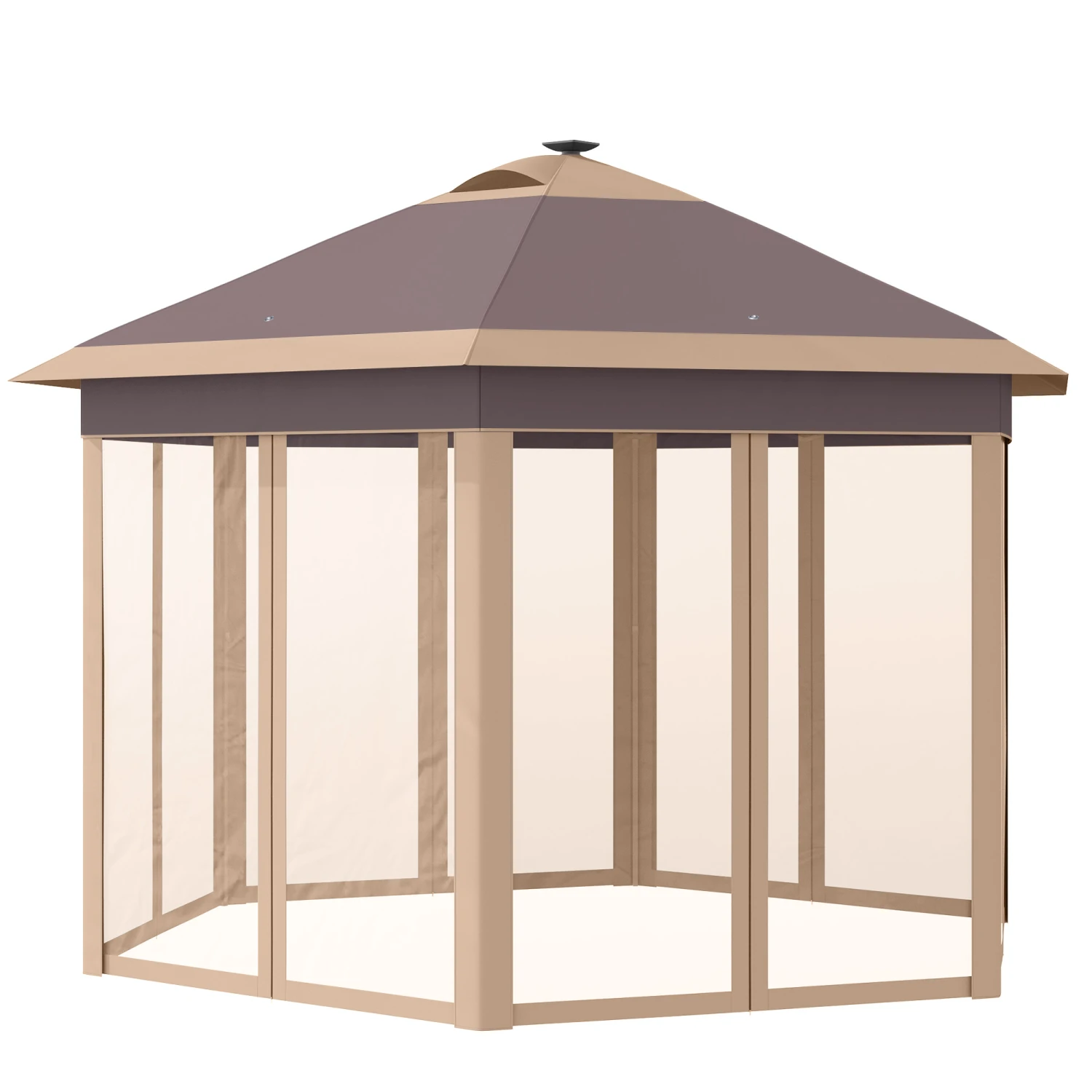 Pop-in, pop-up, and pop-out with Outsunny. This canopy tent with sidewalls is convenient for providing shade and shelter. This screened canopy has a special solar-powered LED light system, so the party doesn’t have to end at sundown. It features zippered mesh sidewalls that let the good in and keep the bad out. Withstand wind using the four included support stakes and vented roof. When you’re done, push the portable canopy down into the carrying bag, and you’re ready to move it to store.