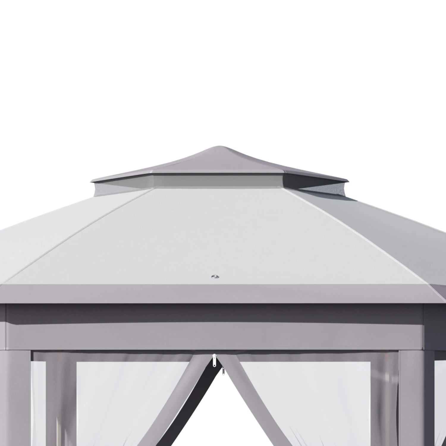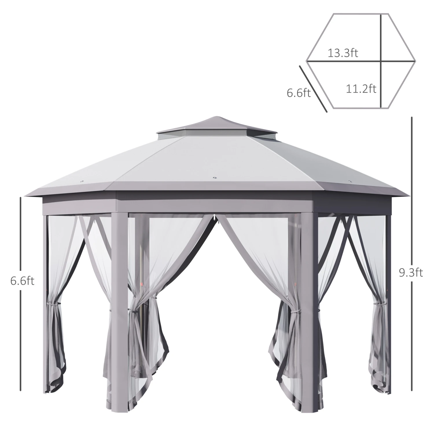 - – Extended two-tier hexagon roof provides elegance and extra wind protection