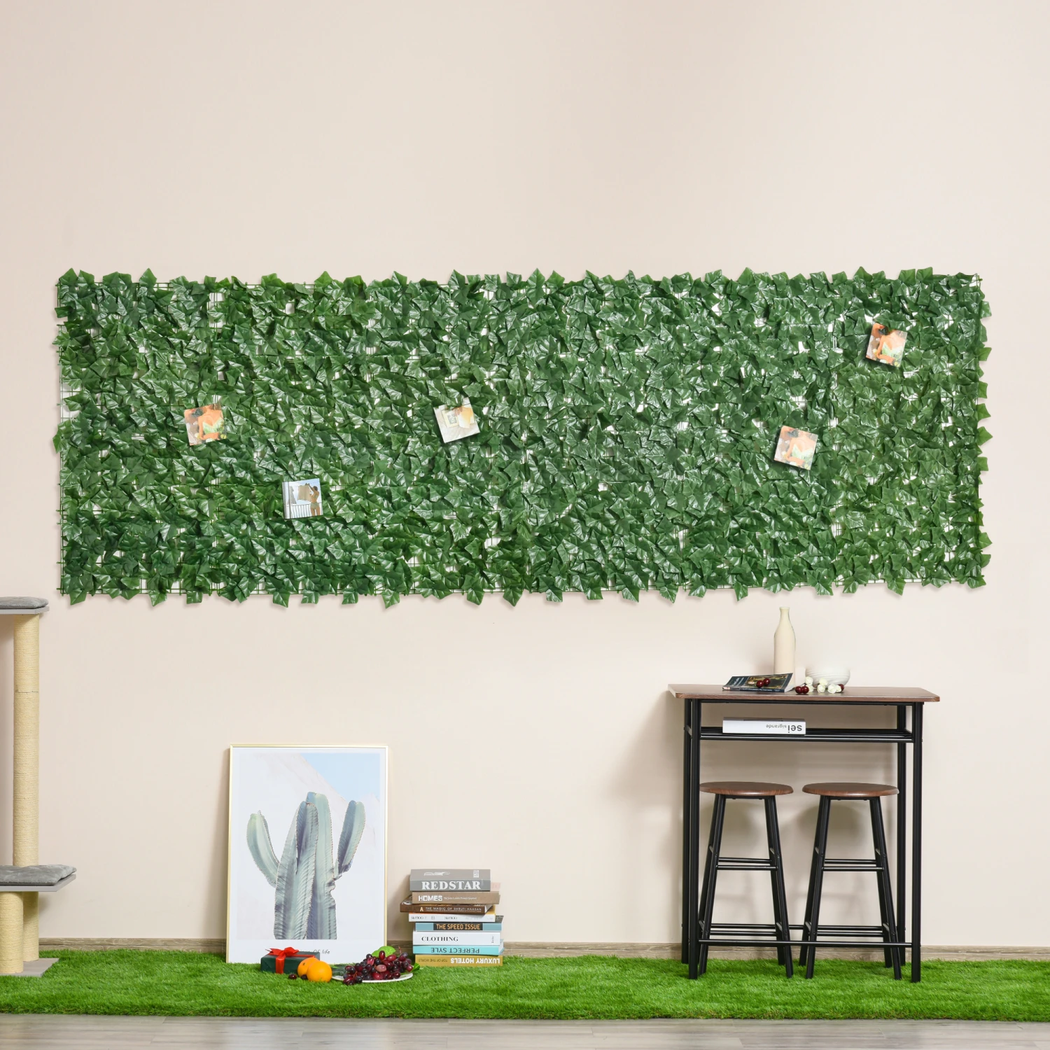 Put up greenery wall backdrop that looks full of life. Use an ivy screen from Outsunny on an existing wall or fence to create a new natural look. Fill spaces to block the sun, removing glare from windows, ,around the balcony, or porch. Put up Ivy greenery that won’t have you worrying about fading, watering, crumbling, pruning, or any of usual mess. It’s easy-to-install and maintenance-free, making it an excellent solution for both decor and privacy. Get out, get decorative, get Outsunny.