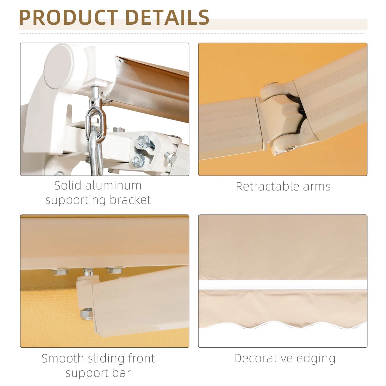 With its sturdy aluminum and solid steel frame, the Outsunny retractable awnings for patio are ideal for creating shade. The reinforced frame and polyester fabrics make the porch awning superior in material and excellent in artistry. It can be easily mounted on the wall with the included accessories. Our patio awnings will create a friendly and relaxed place on your porch or patio and protect you from harmful UV rays. Enjoy both beauty and protection with this Outsunny door awning.