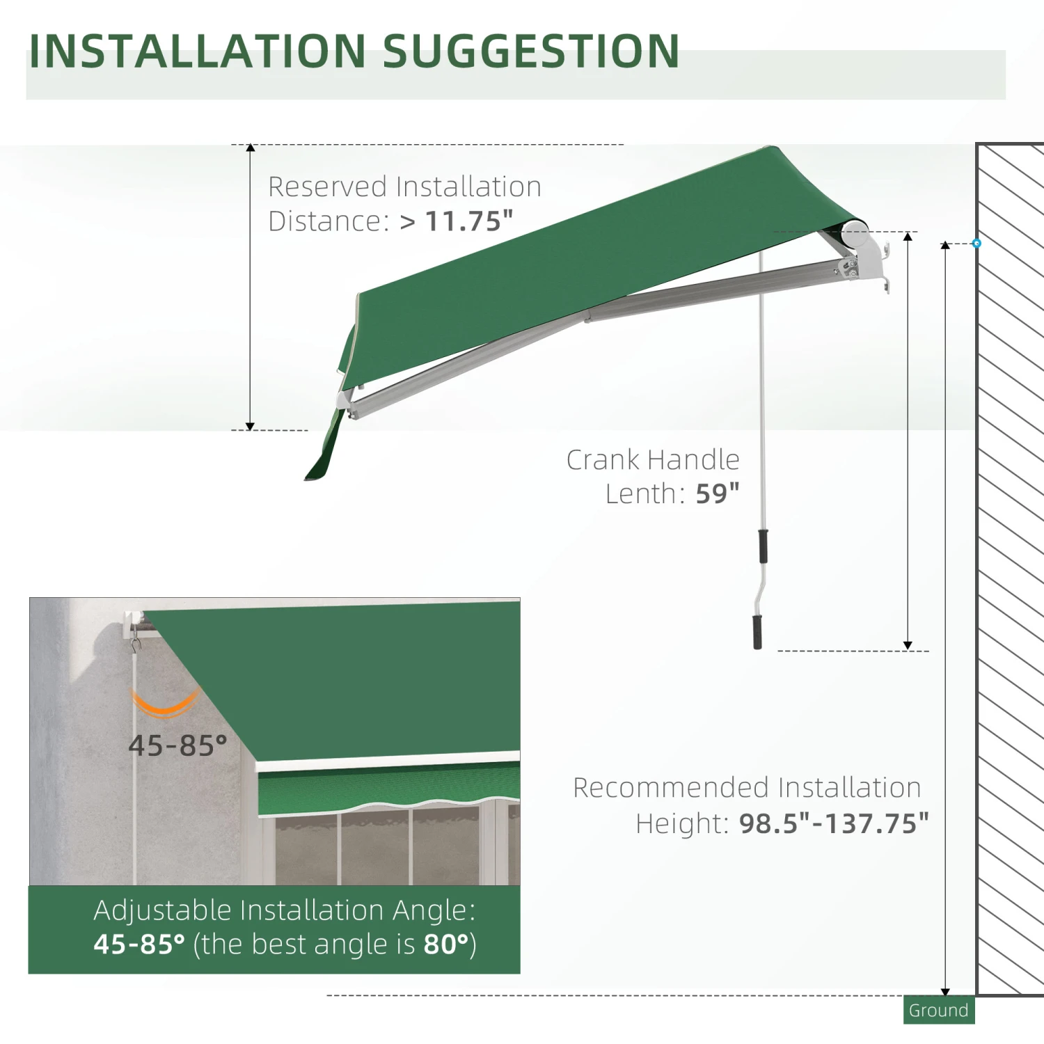 With its sturdy aluminum and solid steel frame, the Outsunny retractable awnings for patio are ideal for creating shade. The reinforced frame and polyester fabrics make the porch awning superior in material and excellent in artistry. It can be easily mounted on the wall with the included accessories. Our patio awnings will create a friendly and relaxed place on your porch or patio and protect you from harmful UV rays. Enjoy both beauty and protection with this Outsunny door awning.