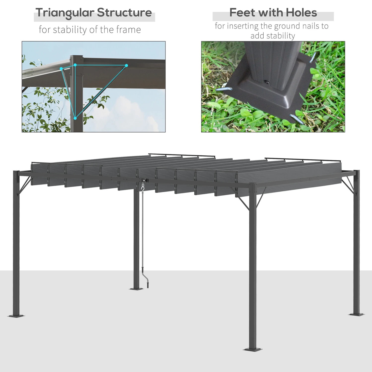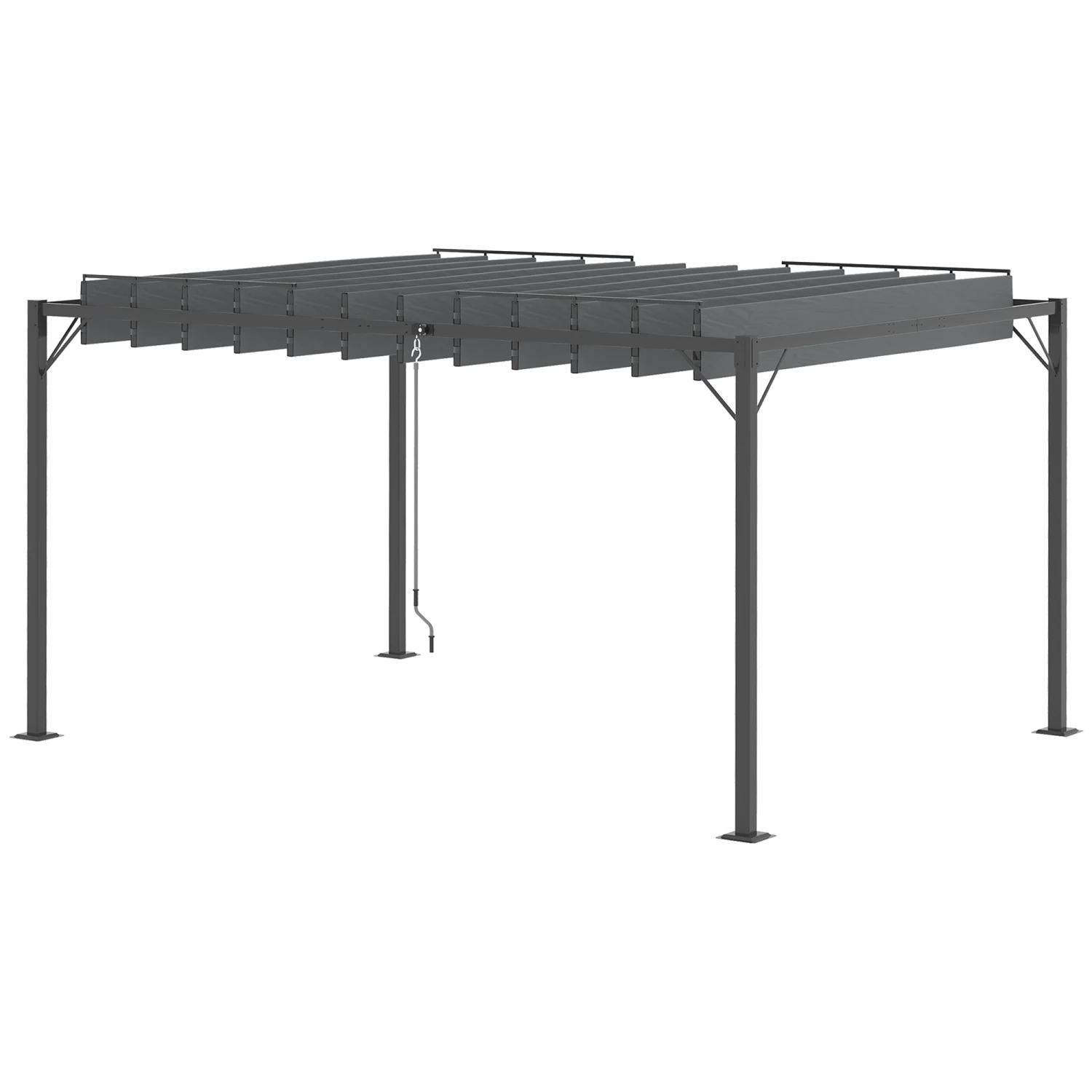 Offering a clever, modern charm Outsunny invites you to bring decor to the outdoors. This 13′ x 10′ pergola with canopy allows you to entertain a crowd. Its hybrid aluminum & steel frame gives you the best of both, with water resistance and heavy-duty structural support. The pull-string “blinds like” louvered roof stops sunburns or lets the sun shine. Featuring sixteen support stakes for mounting it to soft ground; with this attached pergola, your plans are firmly set.