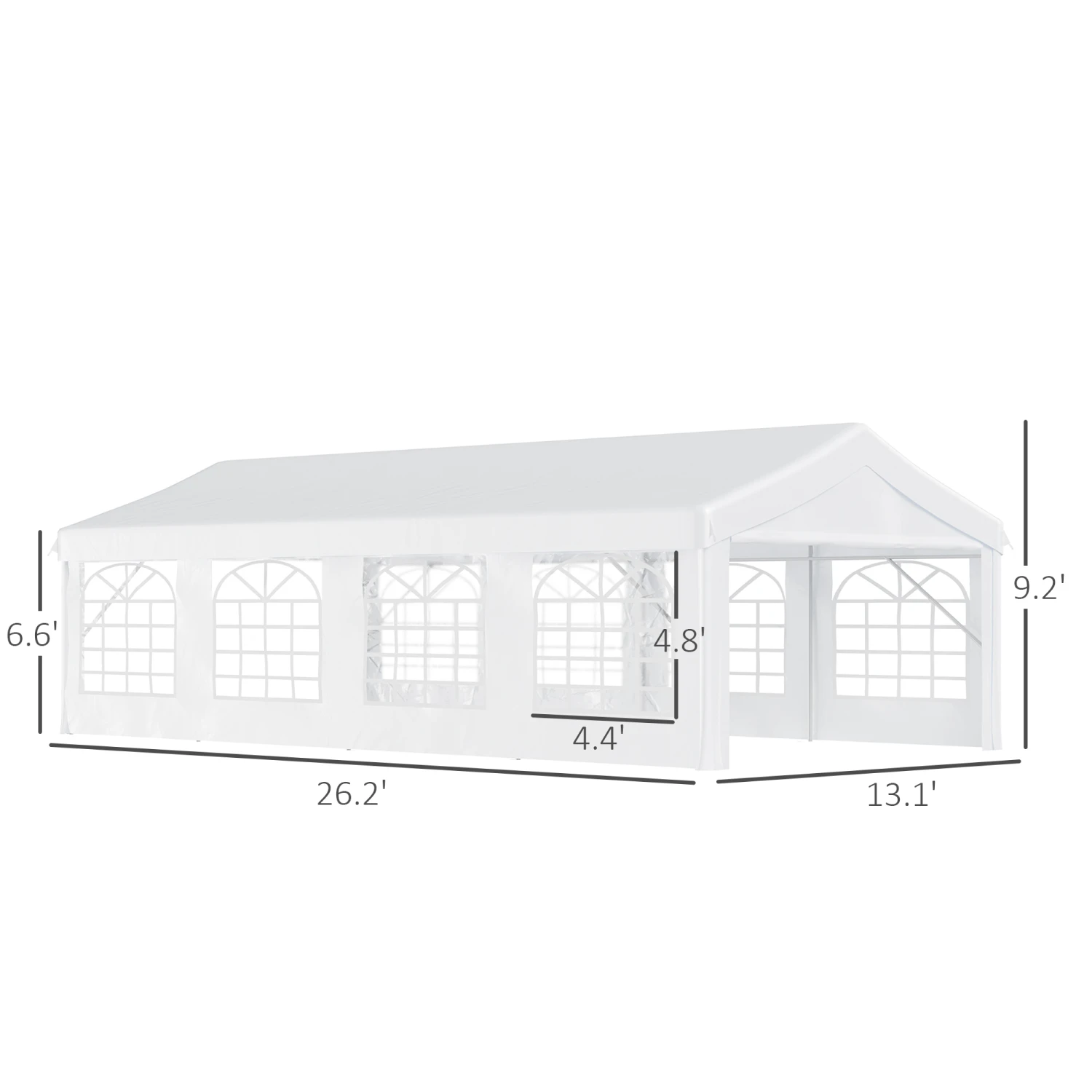 Transform any outdoor area into an extraordinary event space with this extra-large Outsunny party tent. Stop sunburns by keeping out UV. Keep comfortable in your canopy with its two zip-up entrances and stylized PVC windows. Hold weddings, graduations, or business barbeques with room to spare. It’s water and bend-resistant with a reinforced powder-coated steel frame making it durable enough for catering. WARNING: Avoid rain, snow, hail, and strong wind.