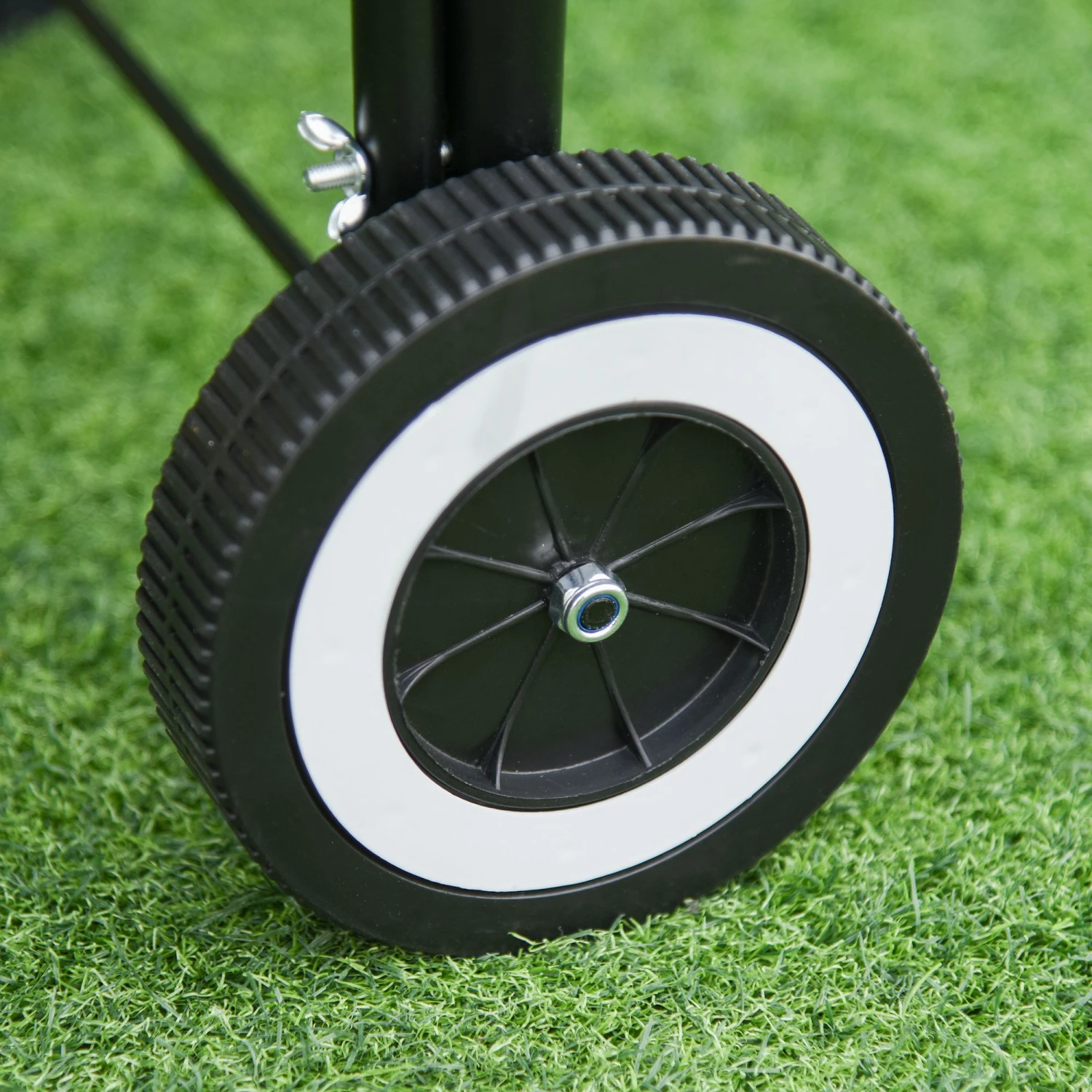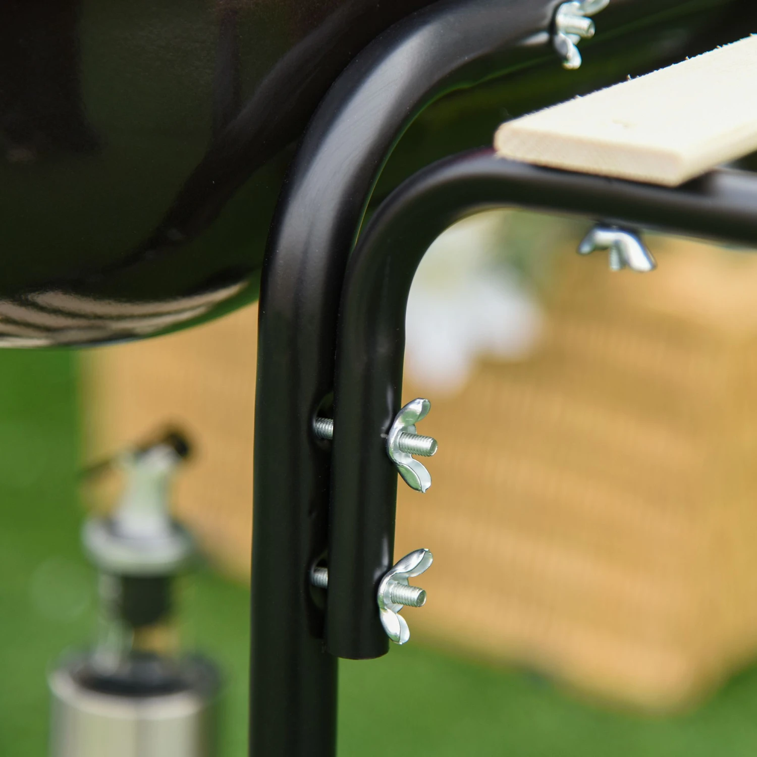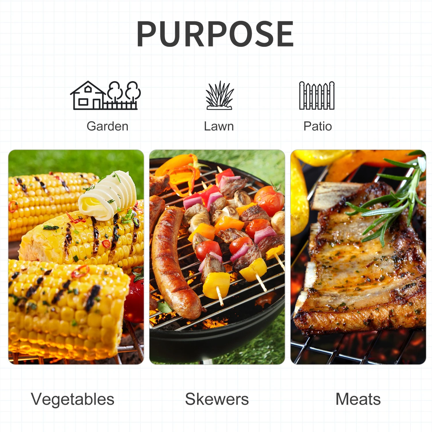This barbecue grill from Outsunny is the perfect solution for grilling. With its mobile design, high temperature resistant bowl, and generous cooking area, you get gourmet grilling wherever you go. Air vents allow for quick and easy temperature control and adjustment without the need to lift the lid while cooking. Side and bottom shelves provide ample storage space for food, utensils, and tools. The small grill is a great and versatile tool for any outdoor activities. Some assembly required.