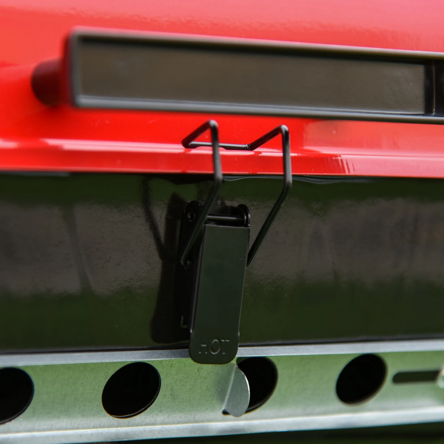 - – Steel construction with a durable enamel coating on the frame for heat resistance