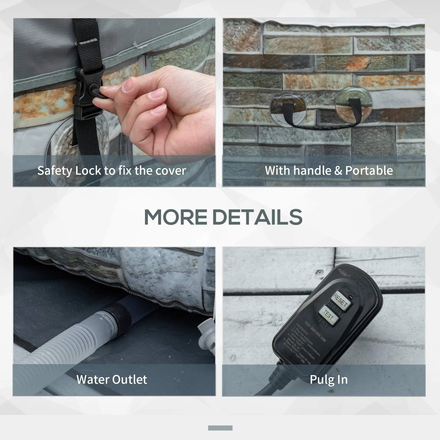 At the touch of the button, sink deep into our warm, bubbling air-jet inflatable hot tub from Outsunny, and relax after a long day! With an easy-to-use interface, our spa can make massaging bubbles appear, allowing you to unwind as you lounge in the warm, healing waters. With a filtration system to accommodate several people. Besides, the filter element is removable, so the hot tub is super easy to maintain for the long term. Check out our hot tub spa, and slip into a warm envelope of comfort.