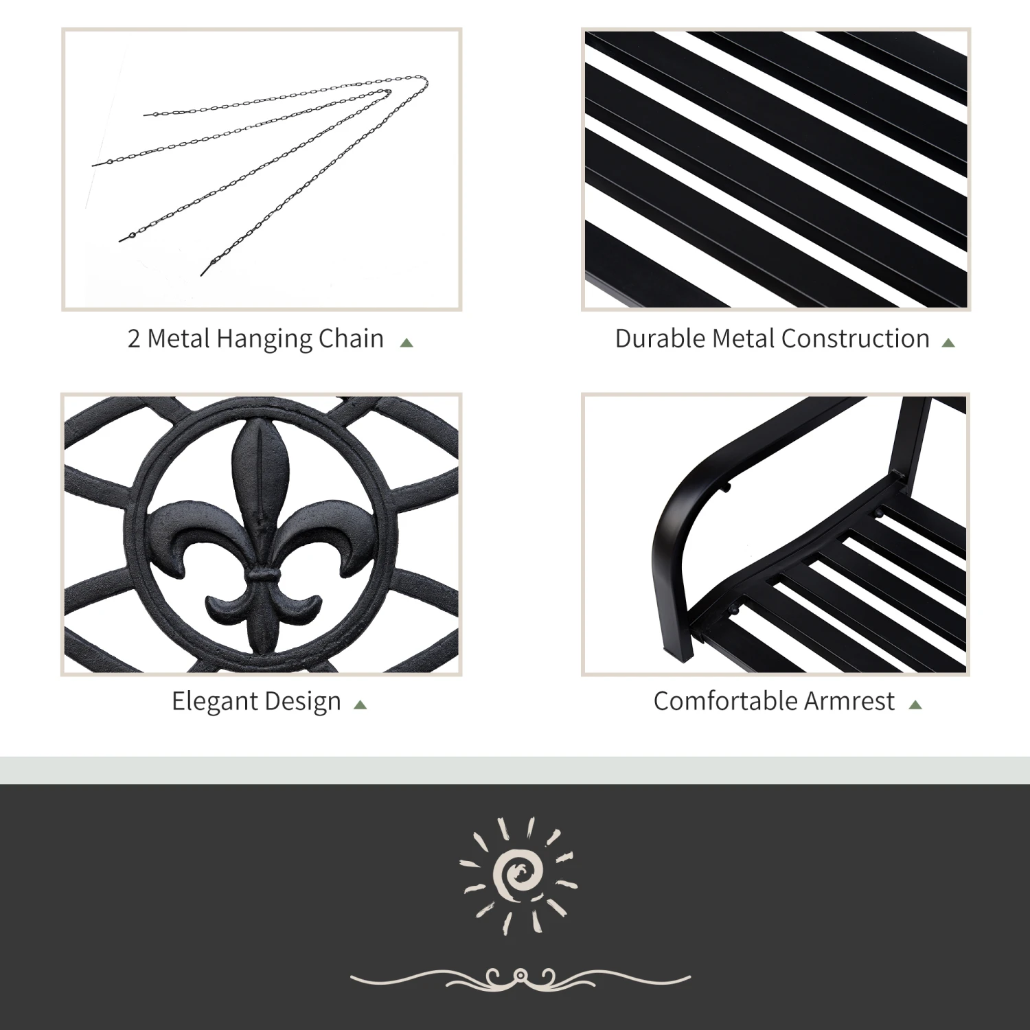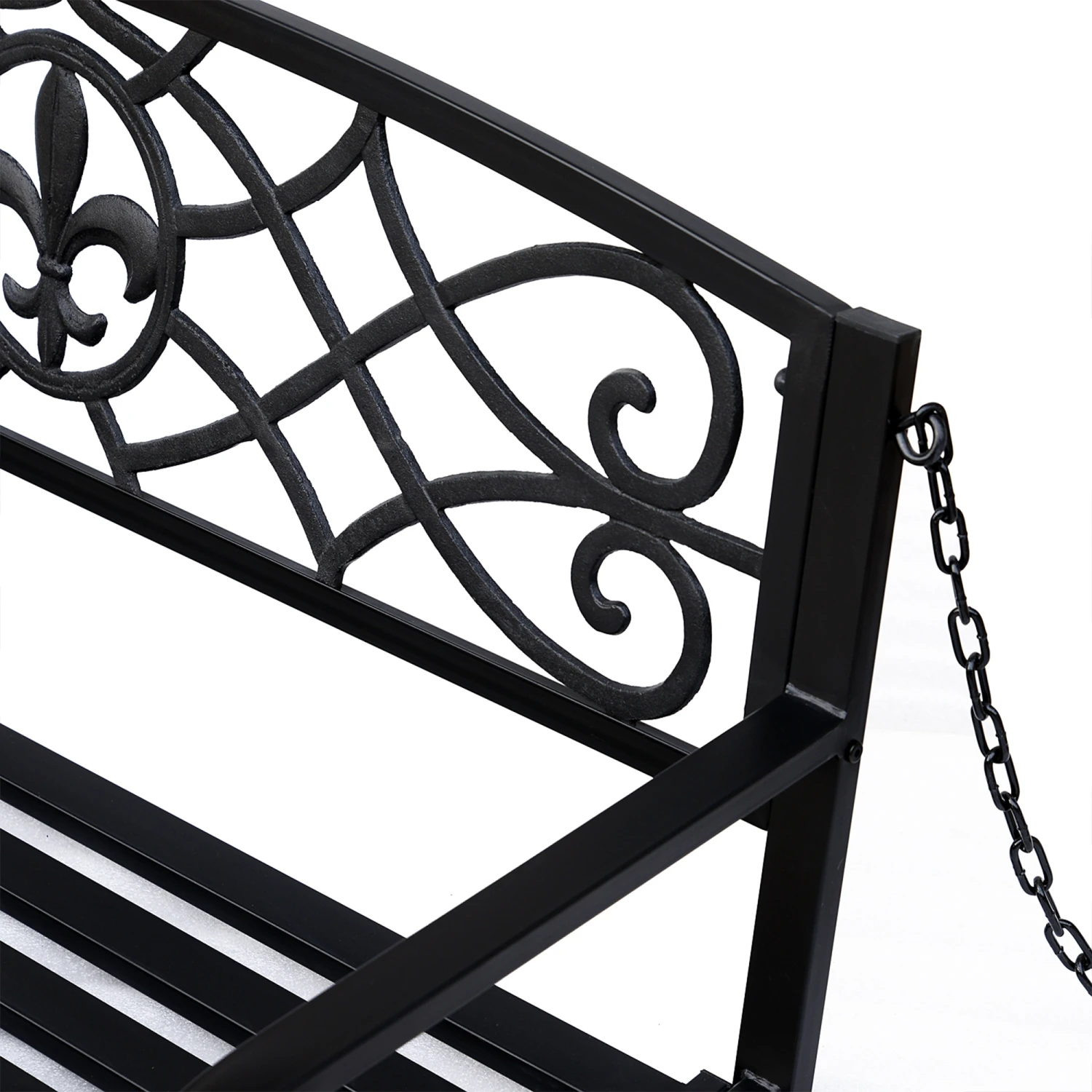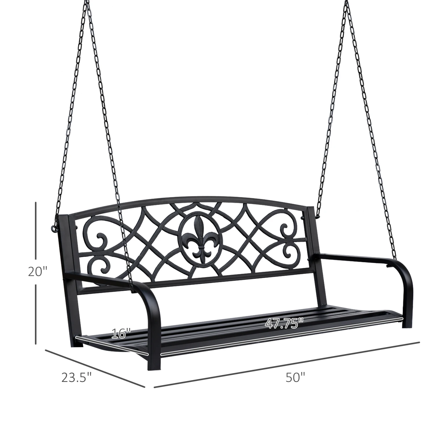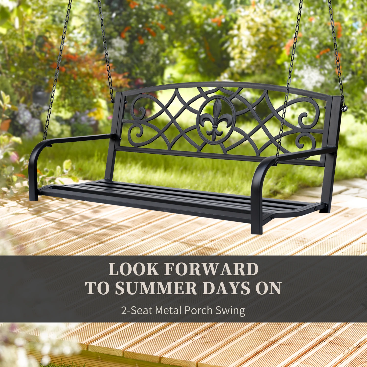 Complement your outdoor furniture set with this front porch swing from Outsunny. Featuring a simple but beautiful fleur-de-lis design, our backyard swings for adults blend elegant style with minimalist taste. The frame is constructed from sturdy and rust-resistant steel that is built for long-lasting durability. Comfortable and functional, the seat of the adult swing can hold up to 2 adults for a maximum weight capacity of 485 pounds. Sit back and relax with this gorgeous outdoor patio swing!