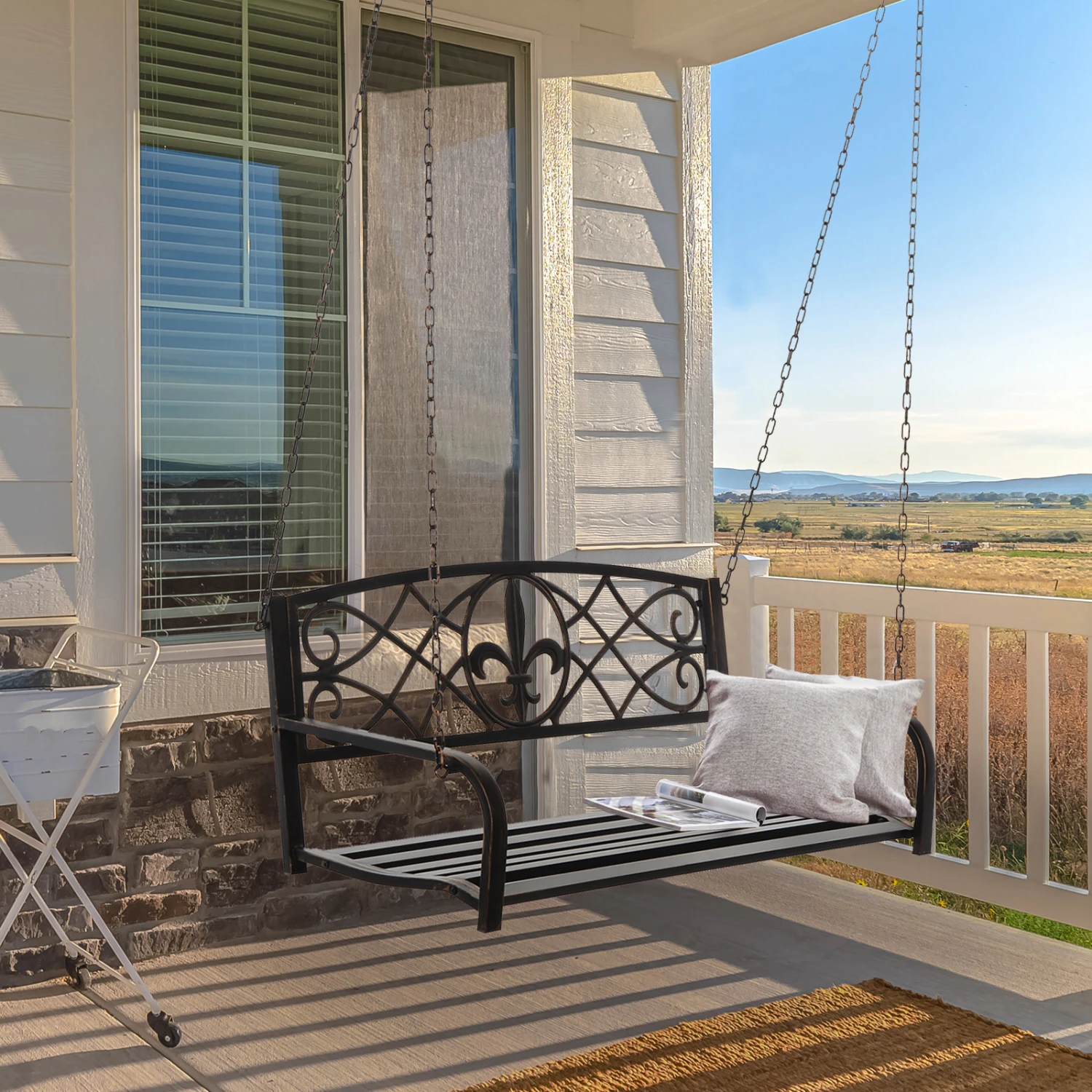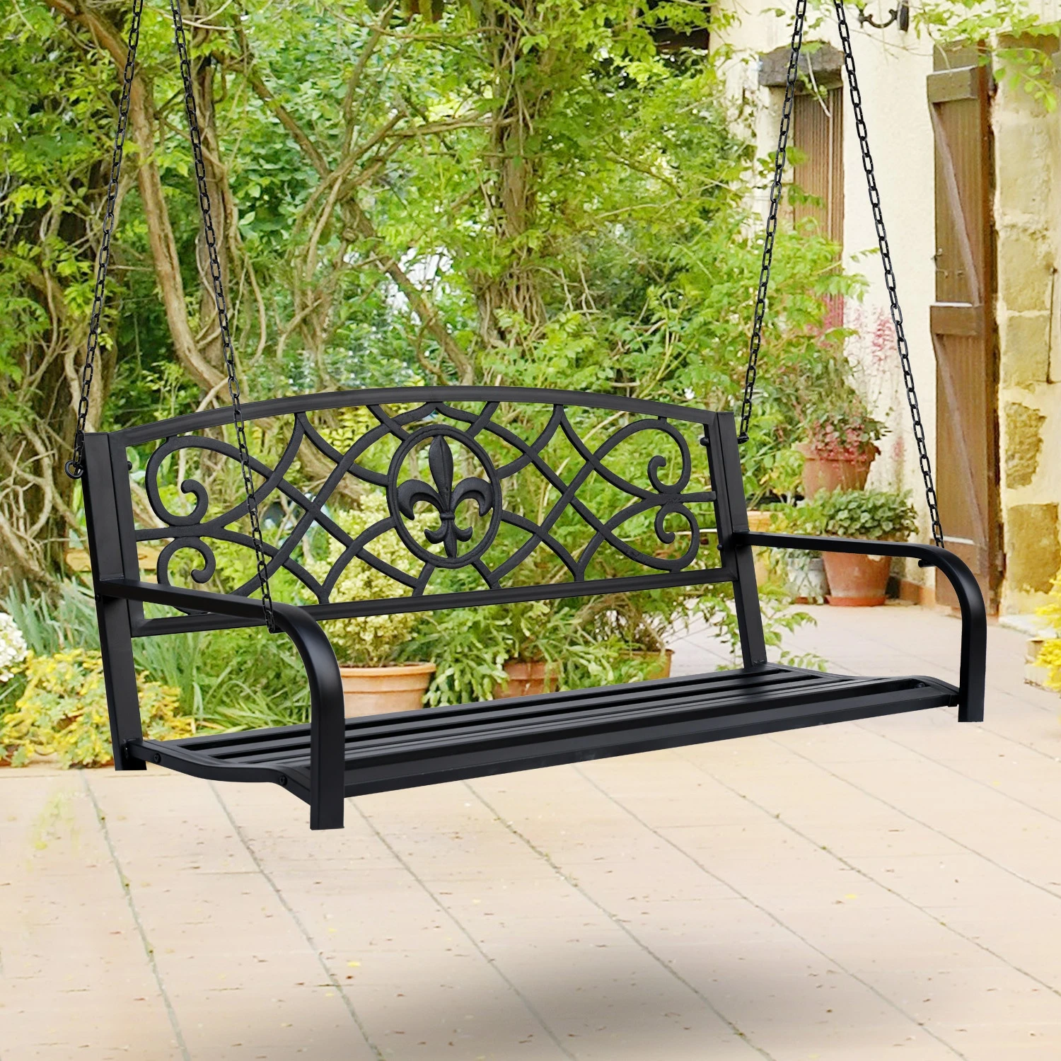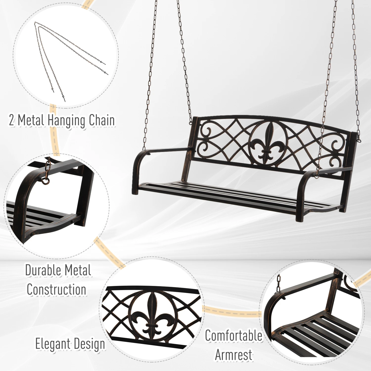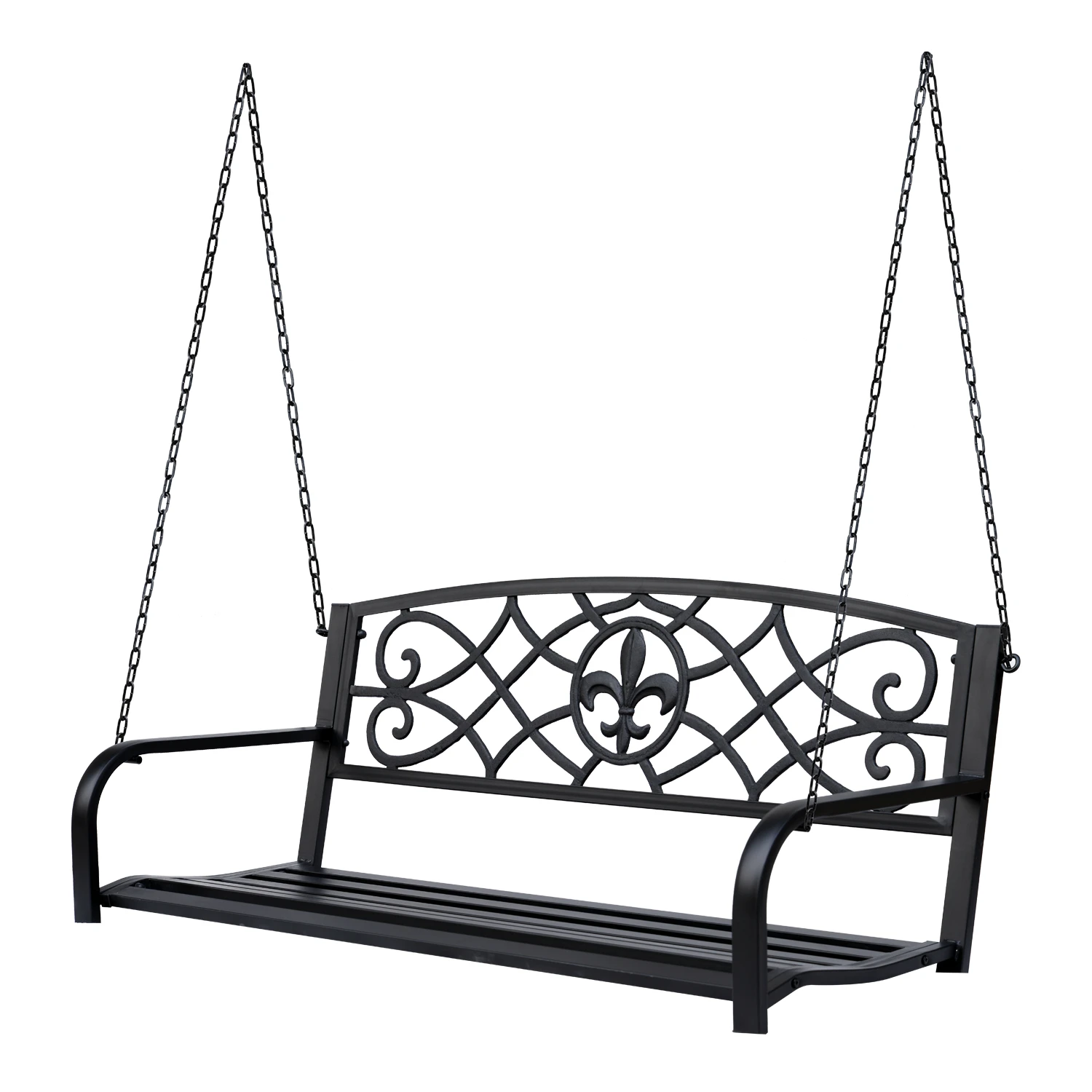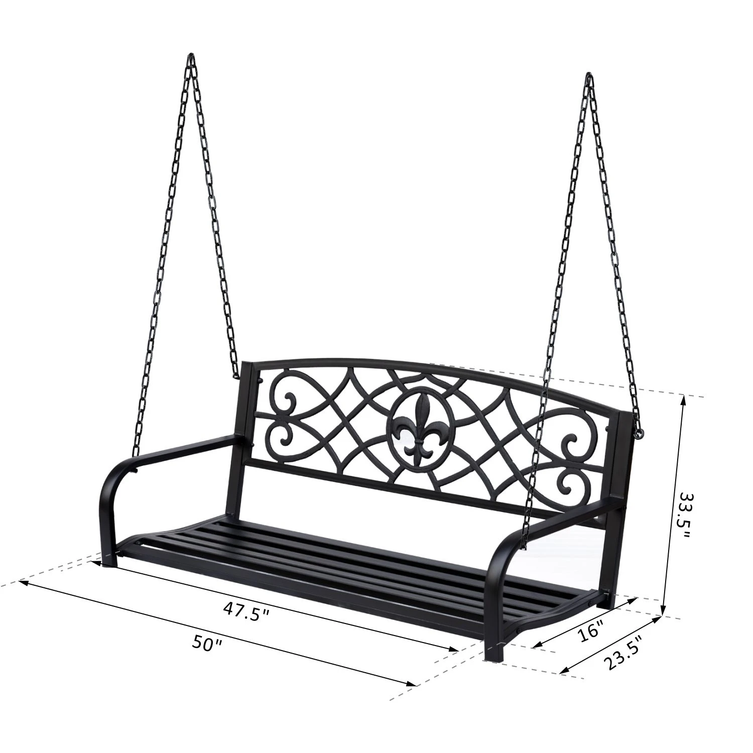 Complement your outdoor furniture set with this front porch swing from Outsunny. Featuring a simple but beautiful fleur-de-lis design, our backyard swings for adults blend elegant style with minimalist taste. The frame is constructed from sturdy and rust-resistant steel that is built for long-lasting durability. Comfortable and functional, the seat of the adult swing can hold up to 2 adults for a maximum weight capacity of 485 pounds. Sit back and relax with this gorgeous outdoor patio swing!