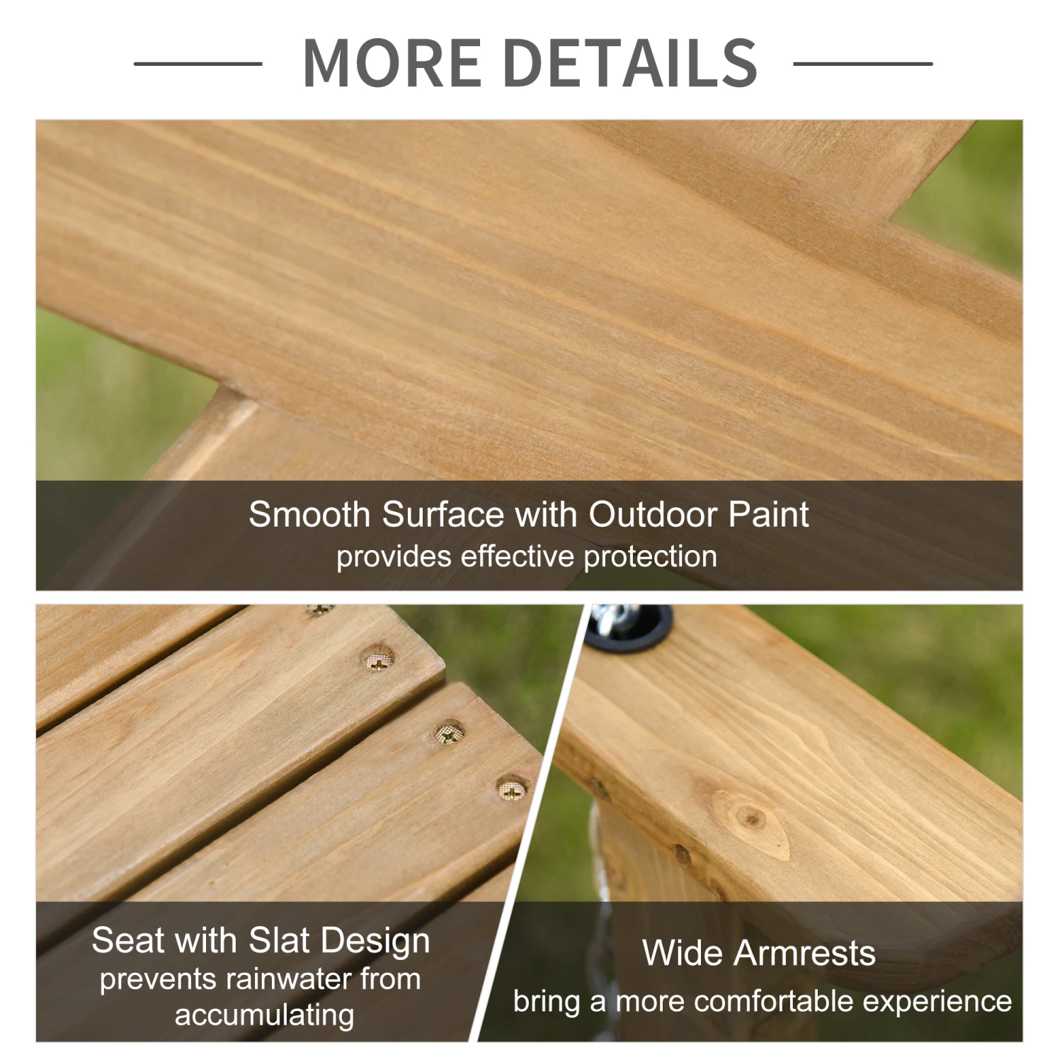 - – Made of solid wood with a sealed surface that helps waterproof it against the elements