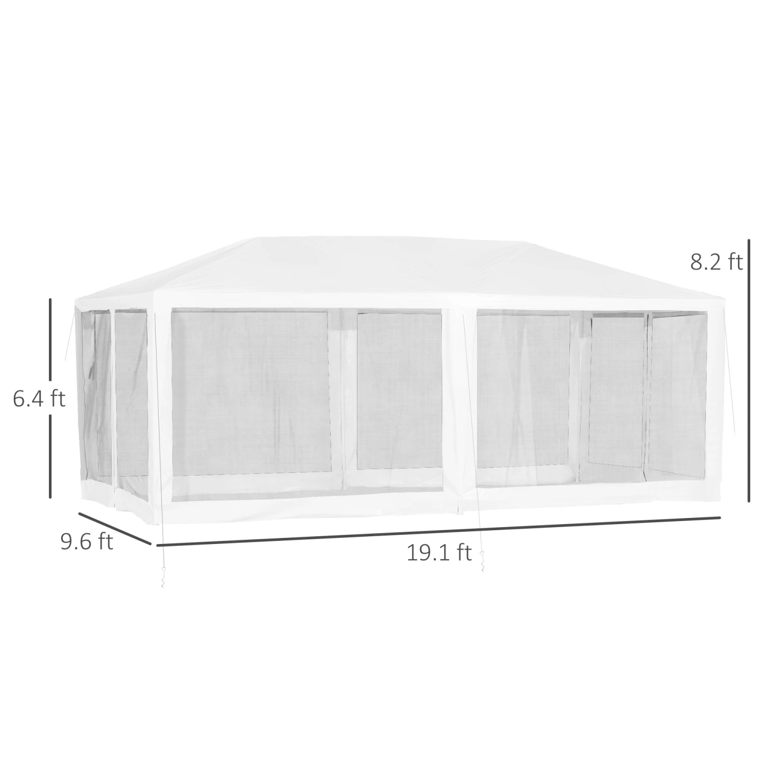 - – 9.7′ x 19.5′ canopy tent with straight leg design, cathedral-style roof, and removable walls