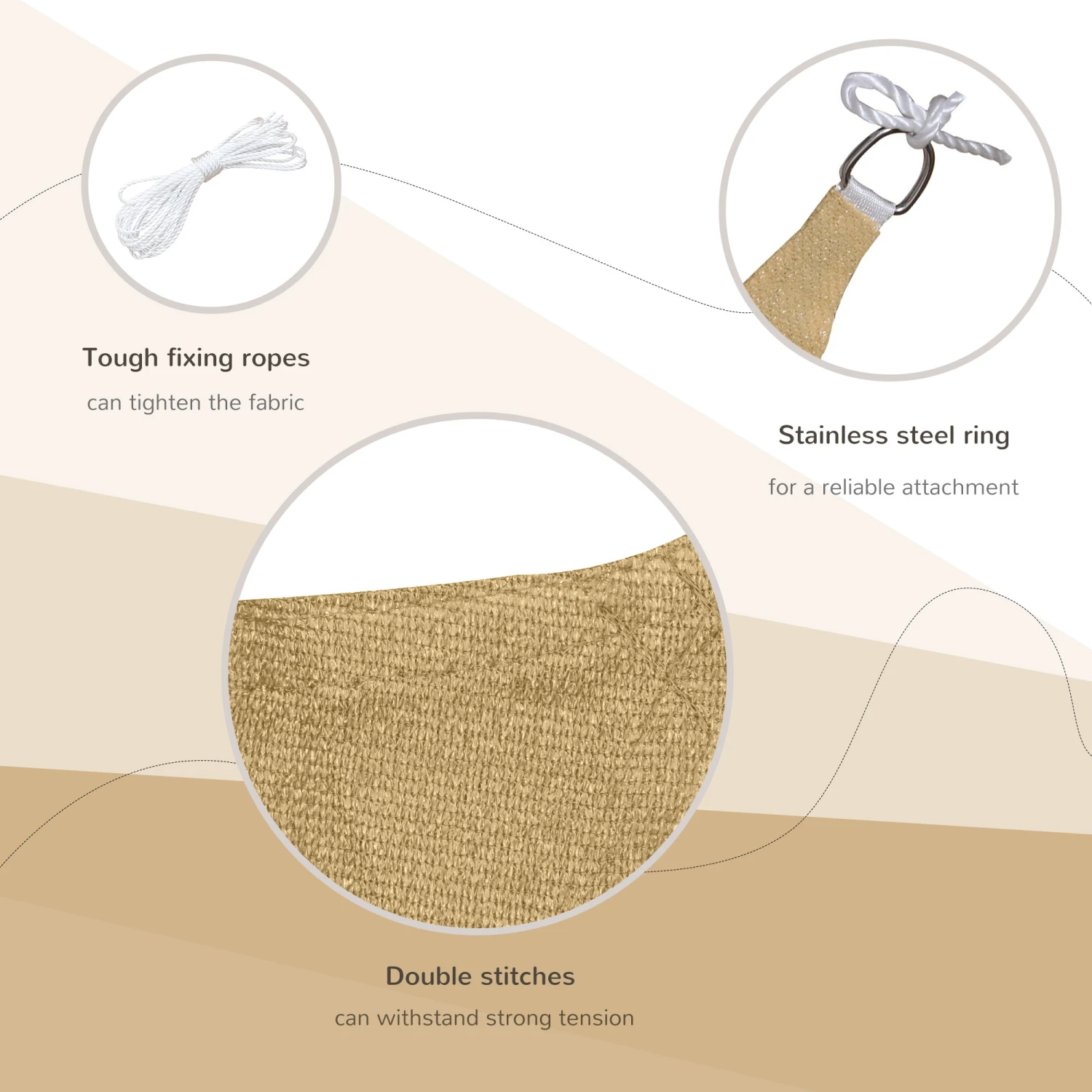 The 20′ x 13′ Rectangle Sun Shade from Outsunny is a very functional and elegant way to protect and shade your outdoor living areas. This outdoor shade sail effectively reduces heat on your patio, backyard and other outdoor areas because the outside shade provides excellent protection from the sun and its harmful UV radiation. Beat the heat with this must-have summer item, and take back your deck by lowering the temperature of your outdoor living spaces.