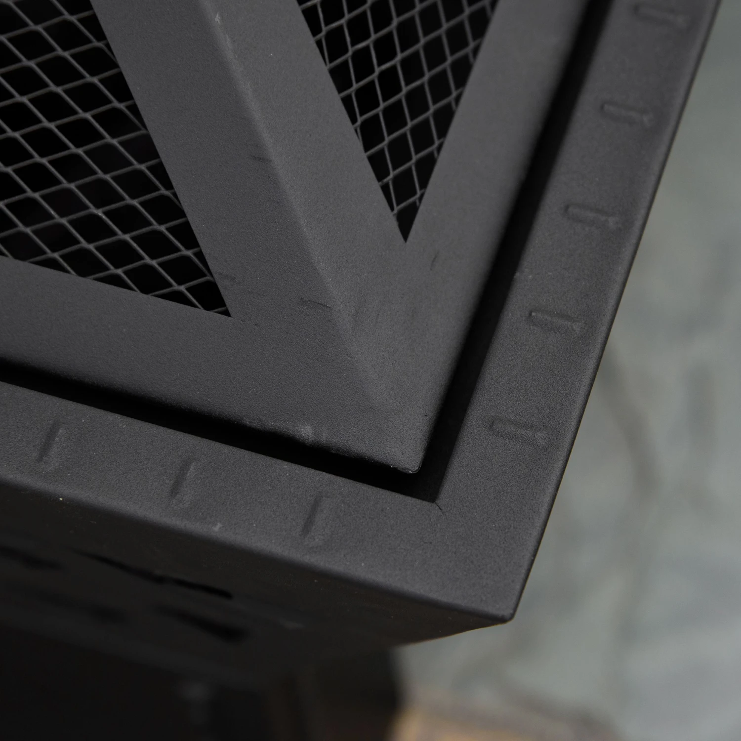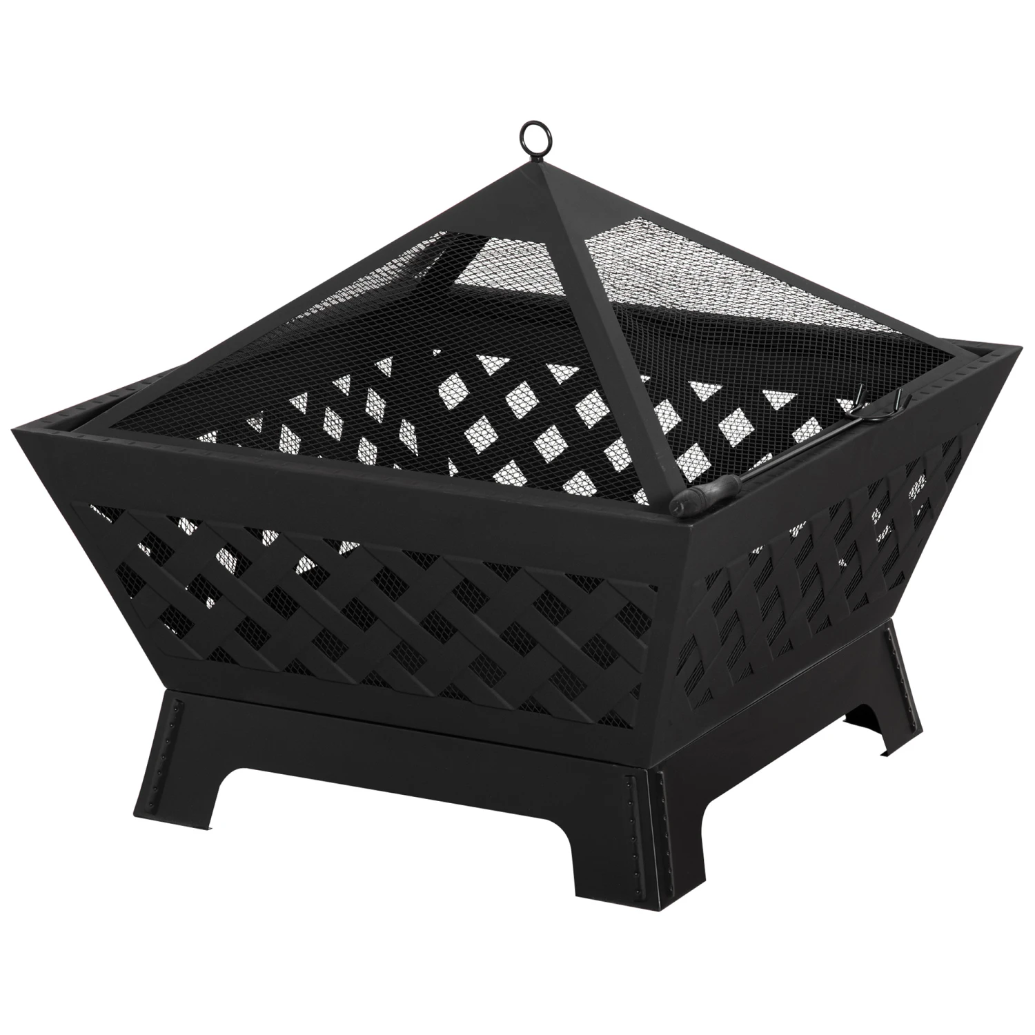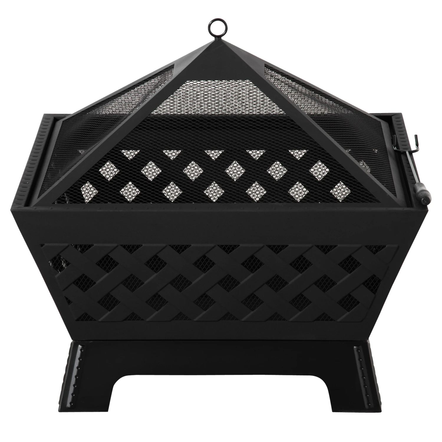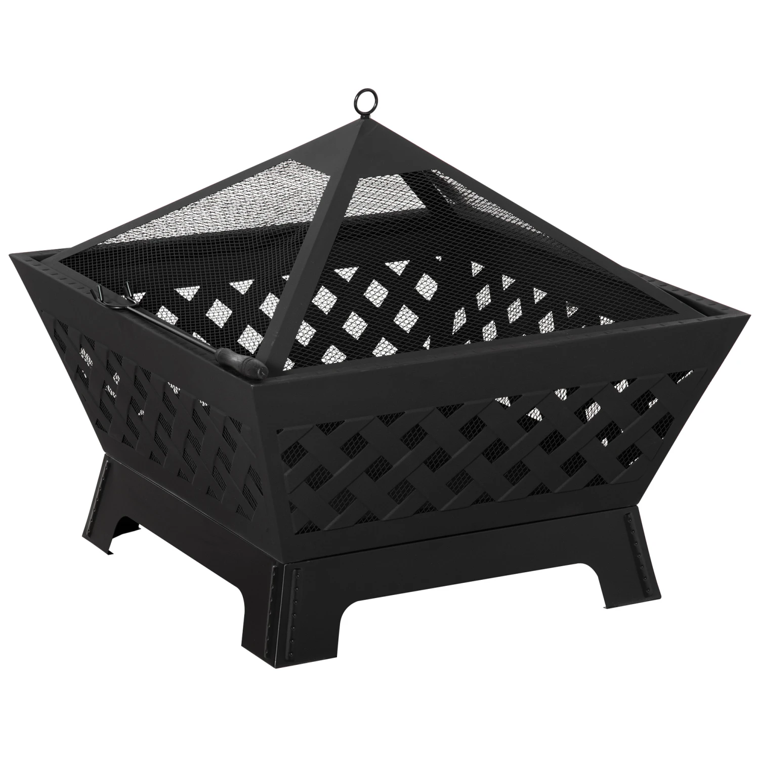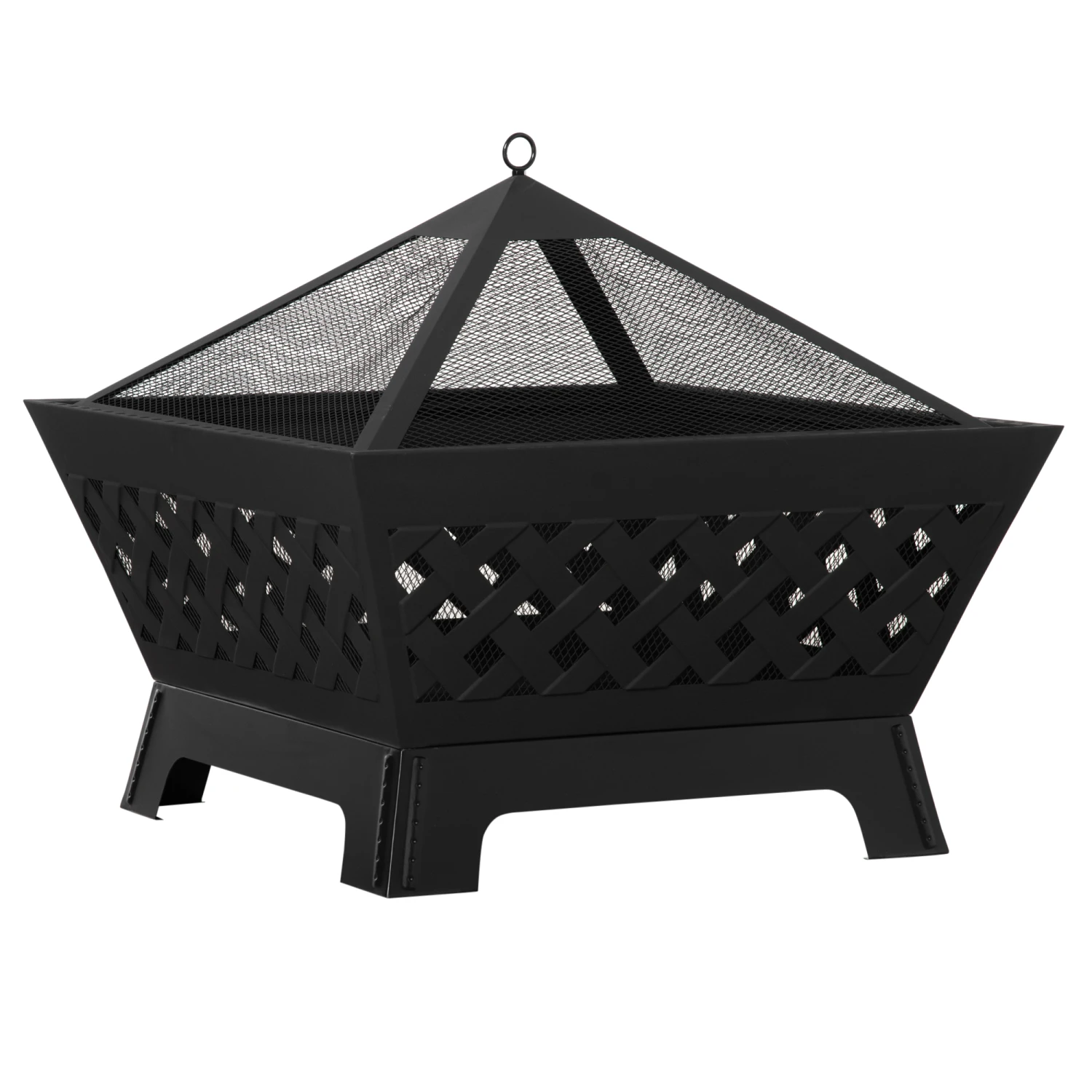 - – Mesh lid helps prevent sparks, embers and debris from flying out