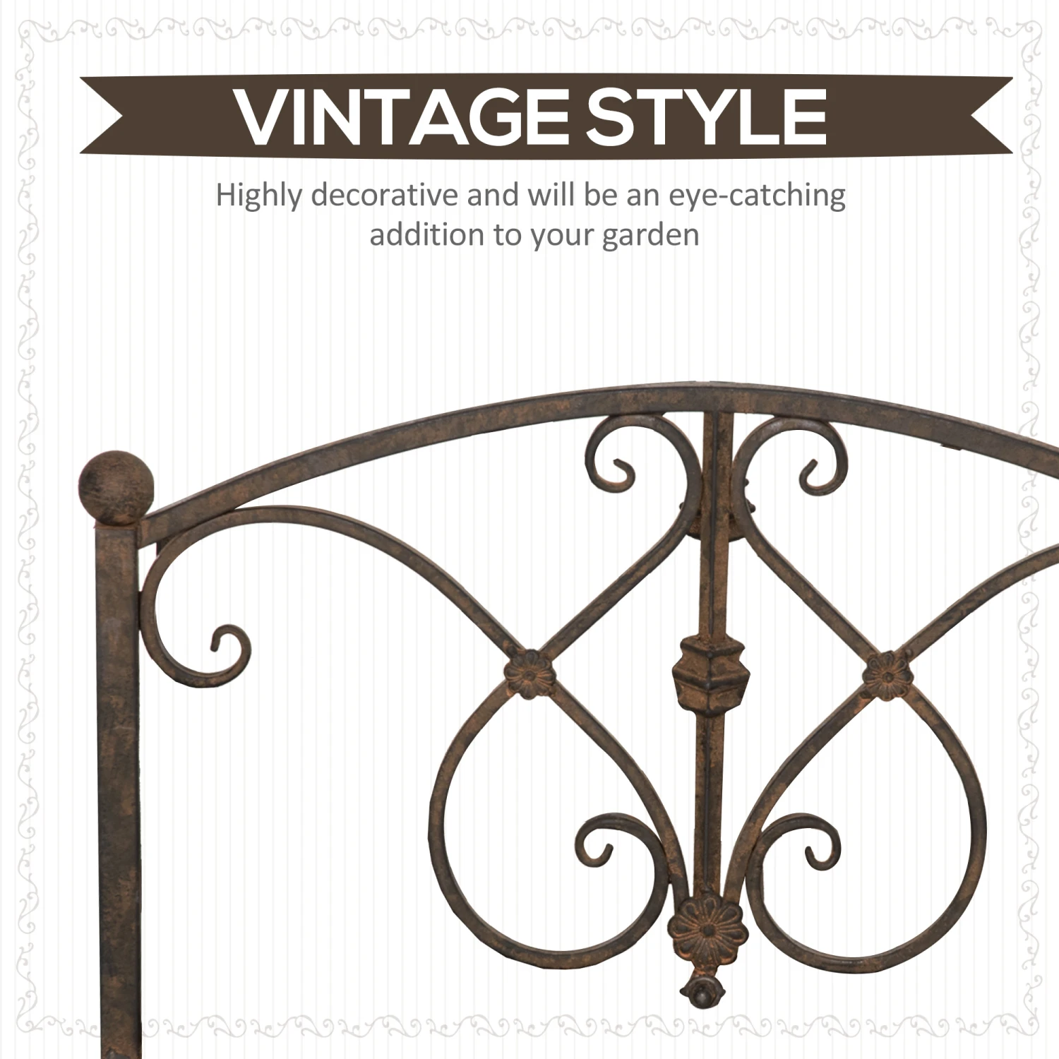 - – Vintage style with floral pattern and rust effect finish enhances the look of any garden walkway