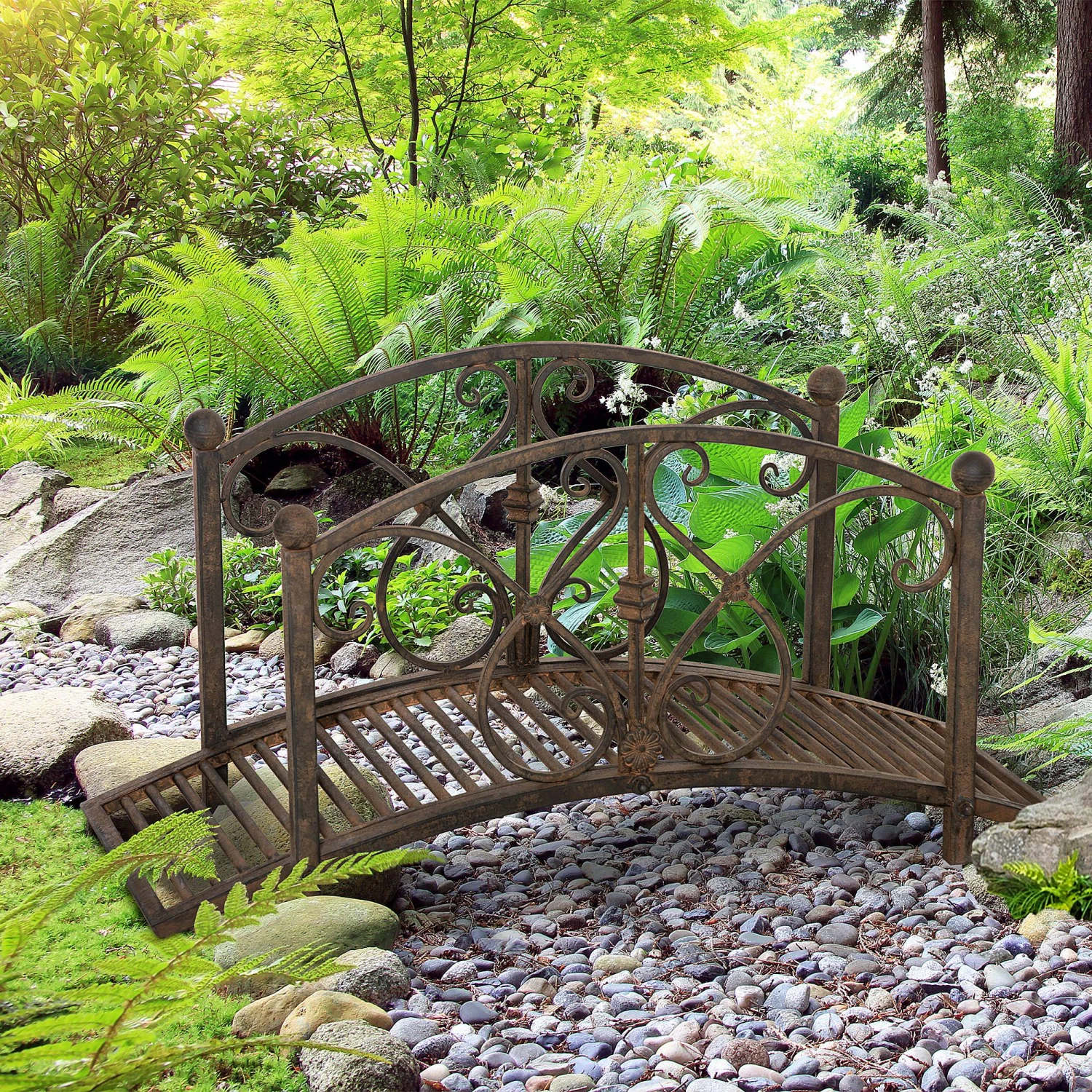 The Outsunny vintage patio bridge with rails is perfect for use as charming landscape decor in a backyard garden, near a pond, or over a small stream. The elegant traditional design and the rust finish effect of the bridge kit is sure to be the centerpiece of your landscaping and a place where you can pause and reflect on the beauty of nature. Check out this footbridge from Outsunny, and add a unique piece to your beautiful garden.