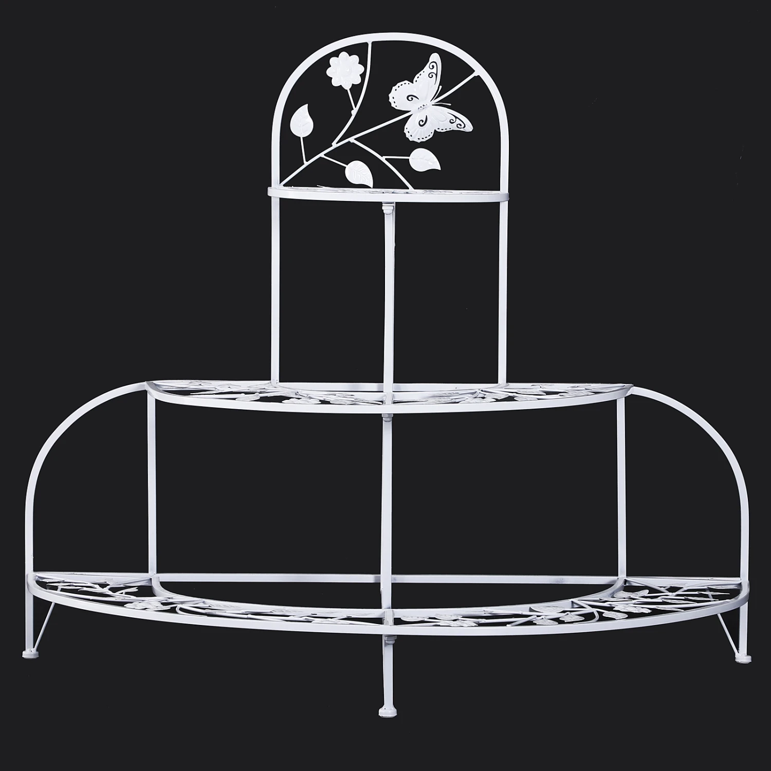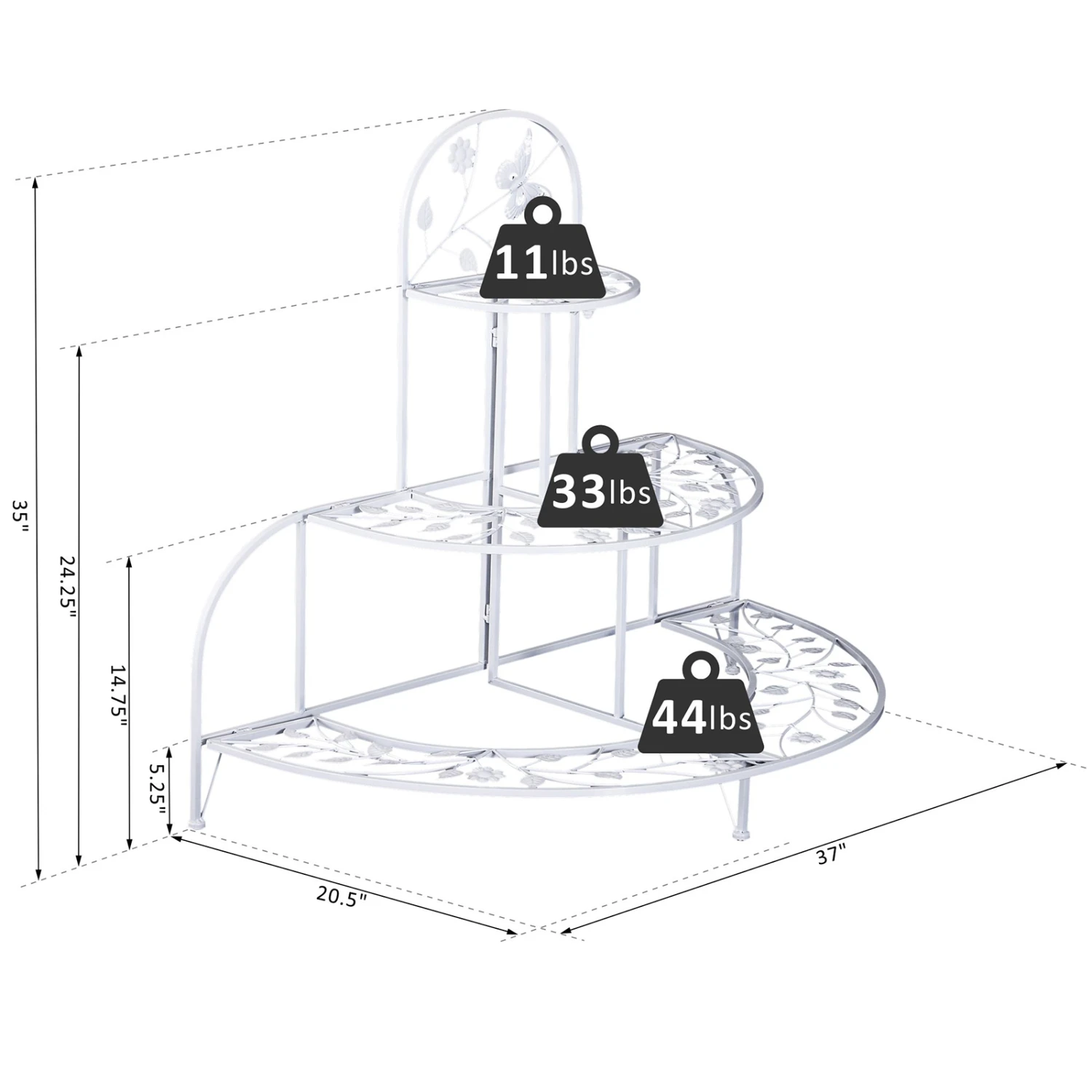 This multi-tier plant stand from Outsunny is a lovely addition to a patio or porch and provides a beautiful place to display your plants and garden décor in an otherwise unused corner. Featuring a sturdy metal frame in a classic white finish this elegant flower rack adds a touch of rustic country style to your space while also offering you 3 step-style tiers that you can use to store and display your favorite potted plants and other decorative items. Simple to assemble you can place it in any space of your home deck or patio to bring both style and storage to any space.