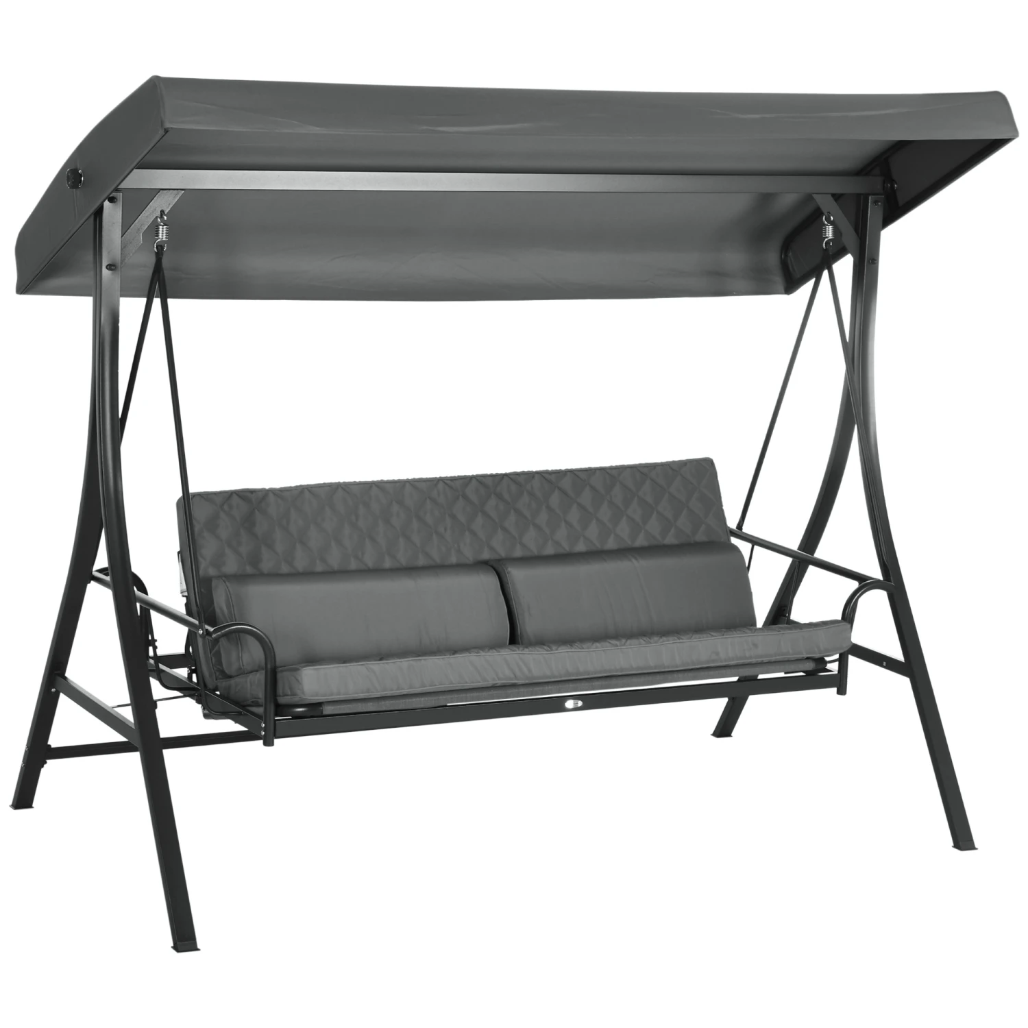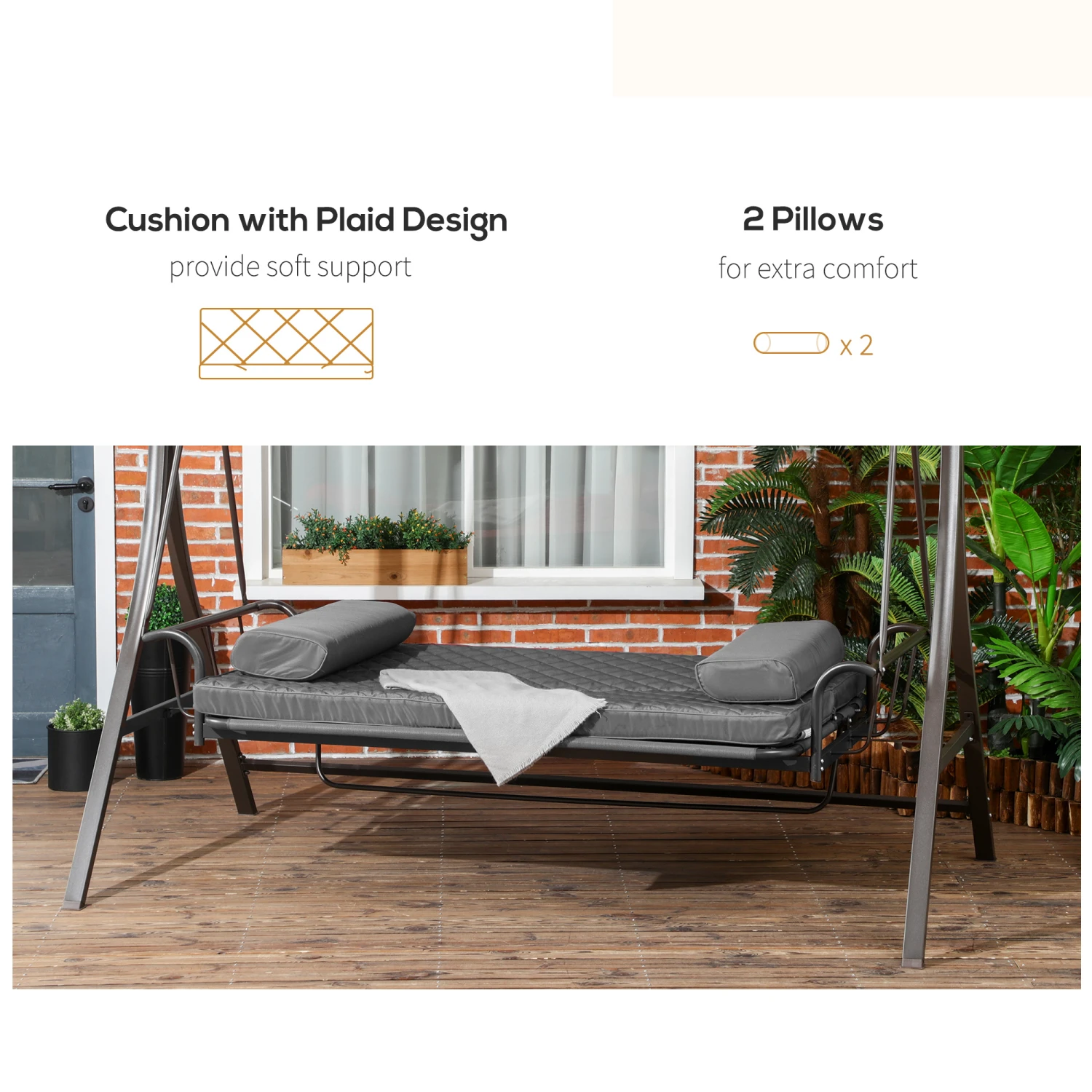 Bring the comforts of inside outside with Outsunny. Our porch swing comes with a canopy and converts into an outdoor bed. Featuring a fully cushioned surface, seat and back, it’s exceptionally cushy and becomes the mattress of a bed at a flip of the frame. Also, pillows on the ends give you cozy armrests that become a place to rest your head. Tilt the canopy top so you can stop sunburns and get rid of glare across an array of angles. Get out, get comfy, get Outsunny.