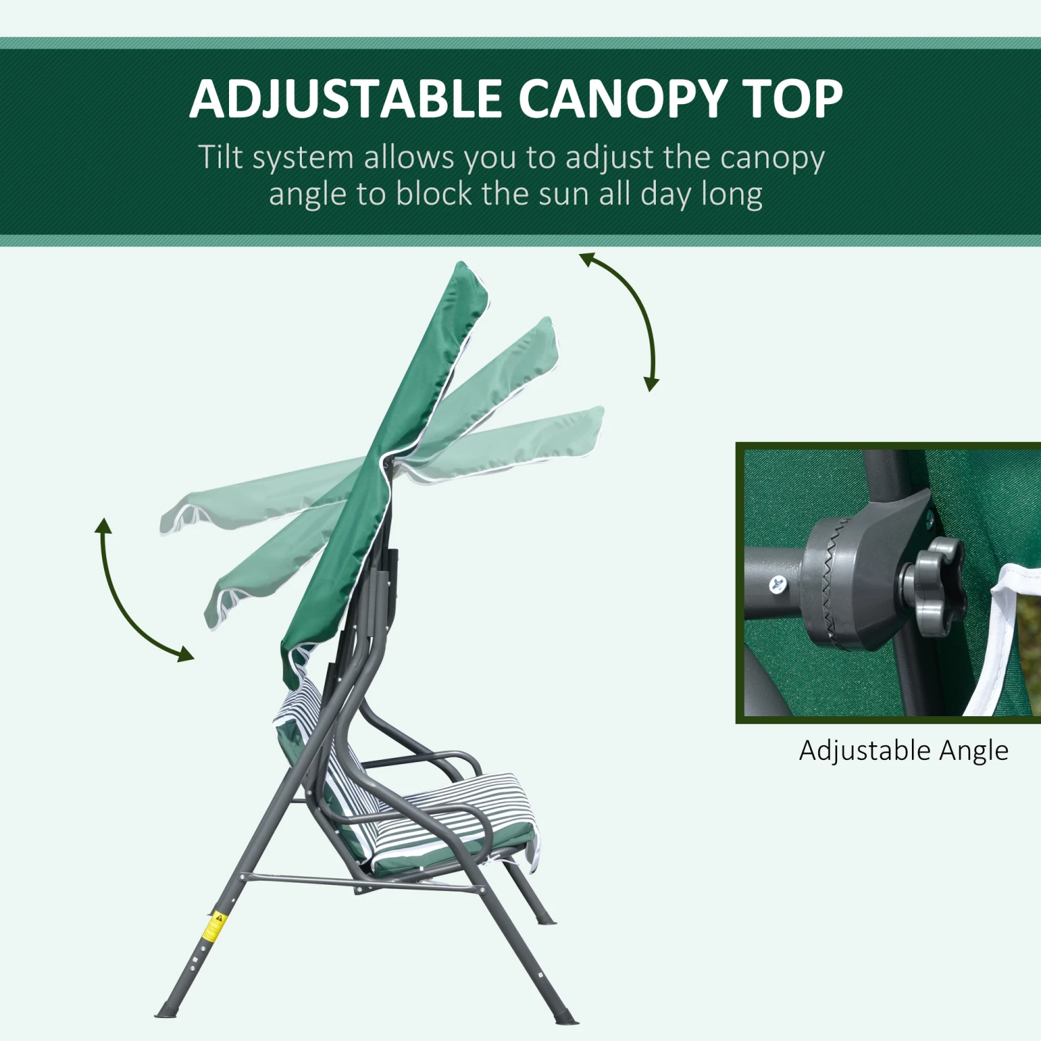 – Tilt design allows you to adjust the canopy angle to block the sun all day long