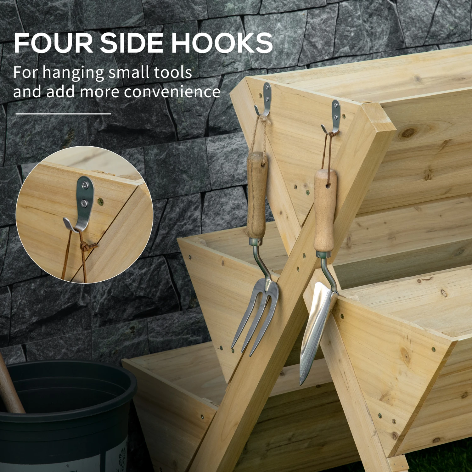 Outsunny is here to help raise your green thumb. This three-tier, five-box A-frame elevated garden bed lets you separate plants by soil type or variety to give you a stylish and practical backyard bouquet. The water draining bottom holes help plants have healthy water levels. Featuring four convenient side hooks to keep tools, gloves, decorations, and accessories. Get extra grow space by going vertical with your garden. With this planter, your patio, yard, or balcony has never looked so pretty.