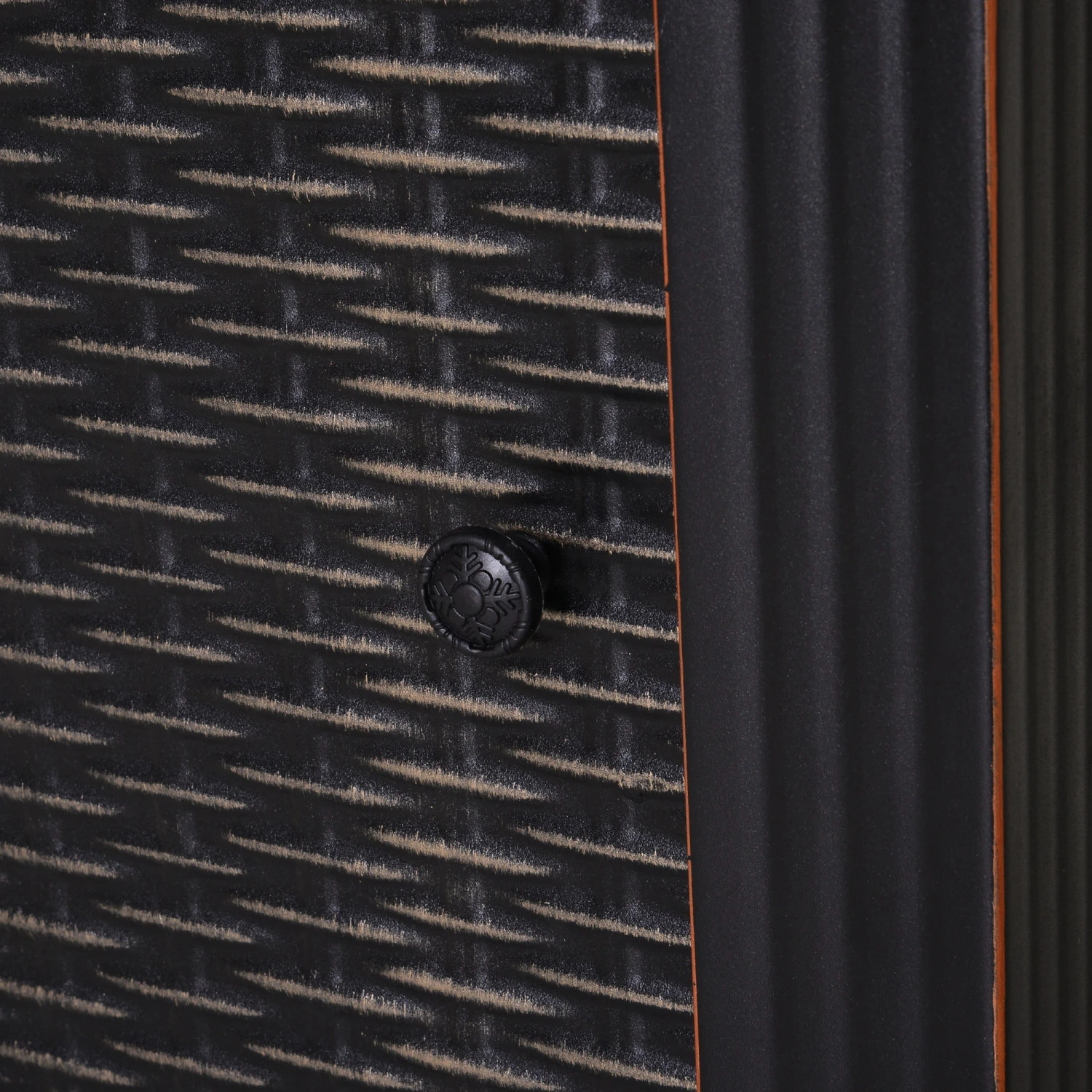 - – Classic metal frame with wicker design door fire pit, suitable for any outdoor space
