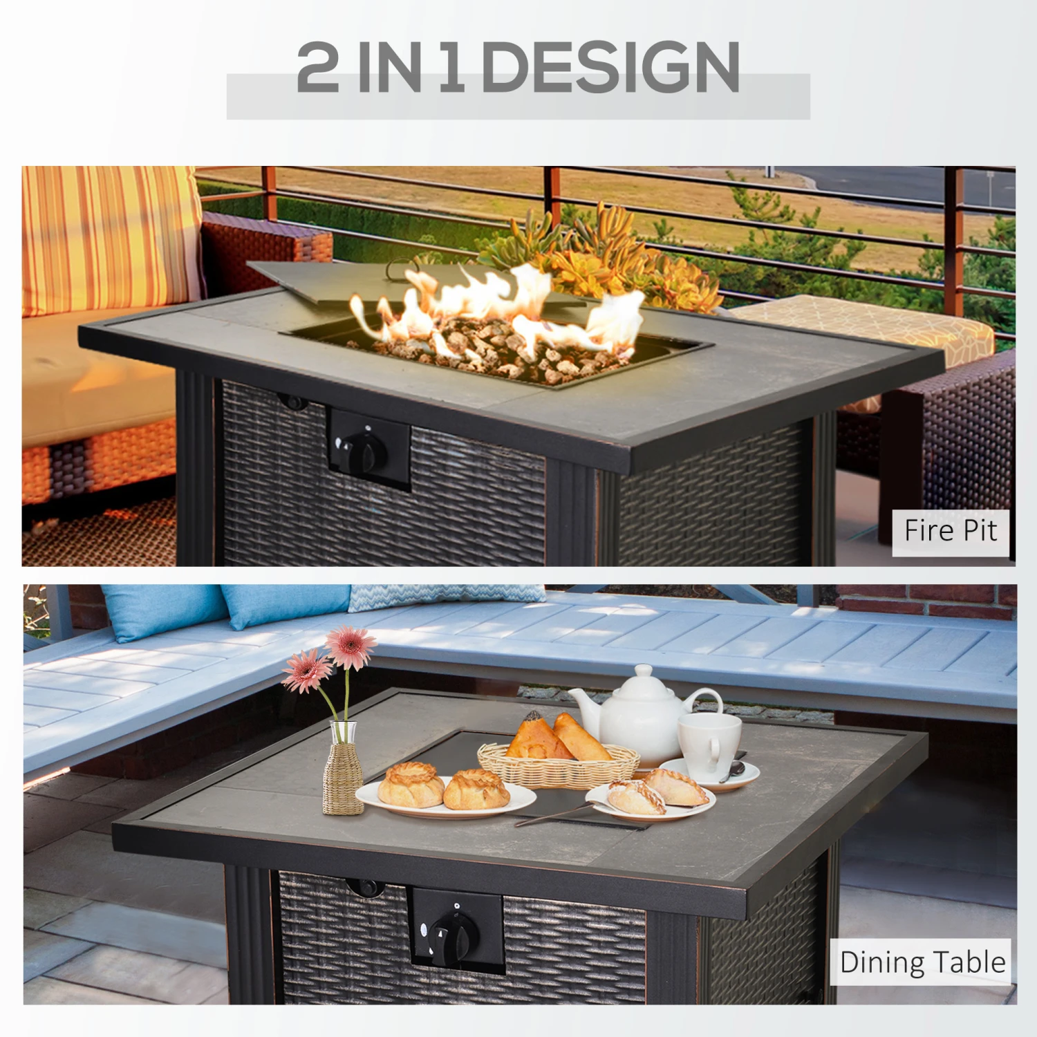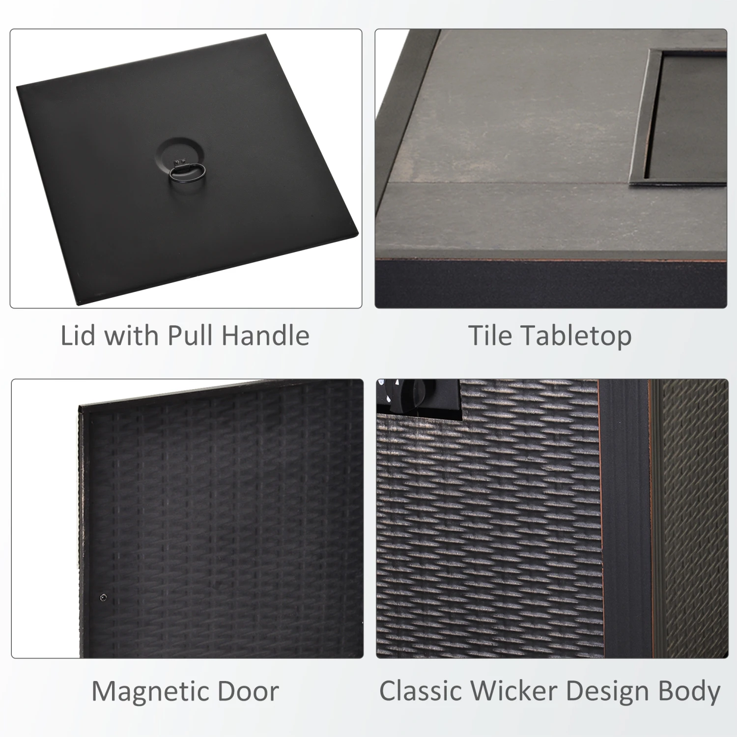 Enjoy the ultimate backyard ambiance year-round with this cozy and functional outdoor furniture from Outsunny that’ both a fire pit and tile table together. It features a classic wicker design base that cleverly conceals the propane tank inside. Complete with a 50,000 BTU CSA-certified burner, you can enjoy all the pleasures of a traditional fire without worrying about messy ashes. Whether it’s on a porch, patio, or in your garden, our gas fire pits for outside make a classy addition to your home.