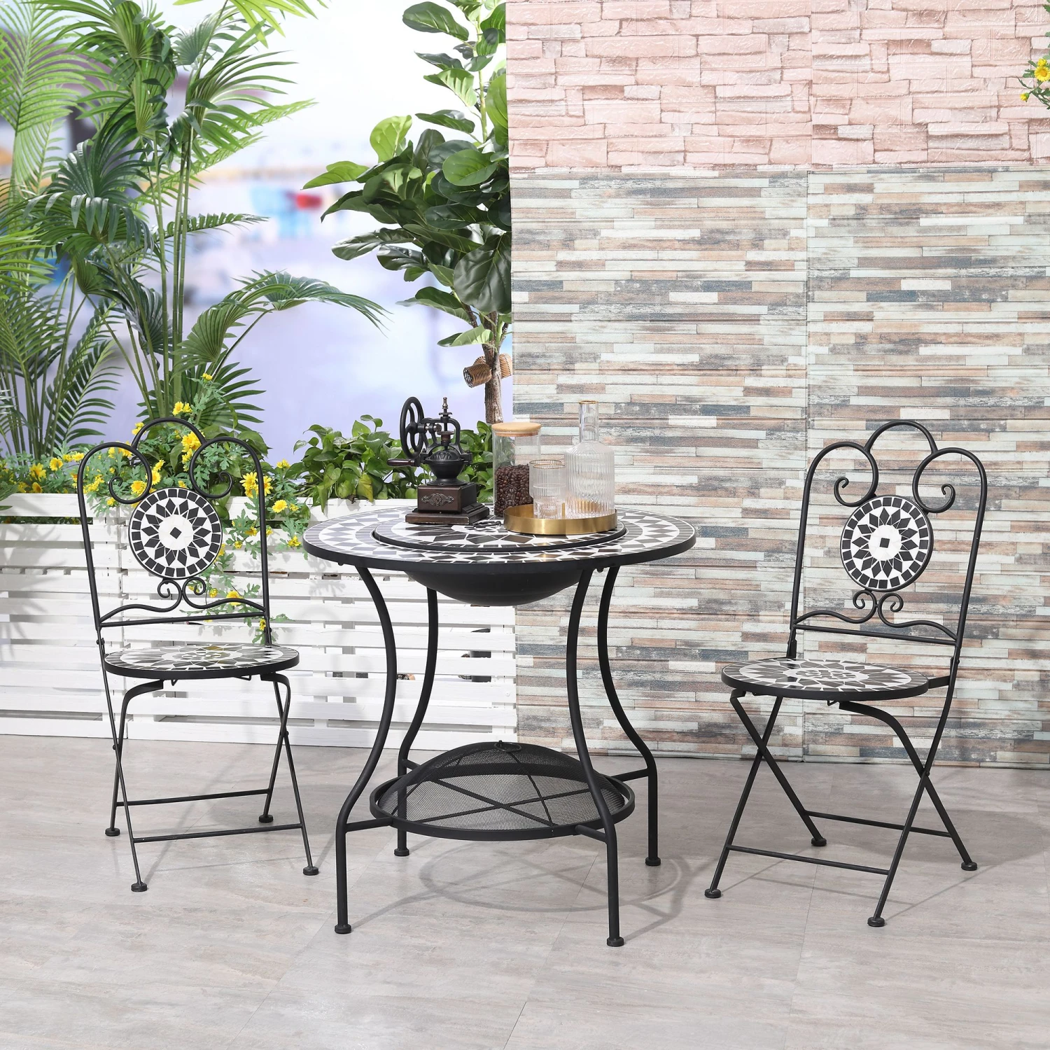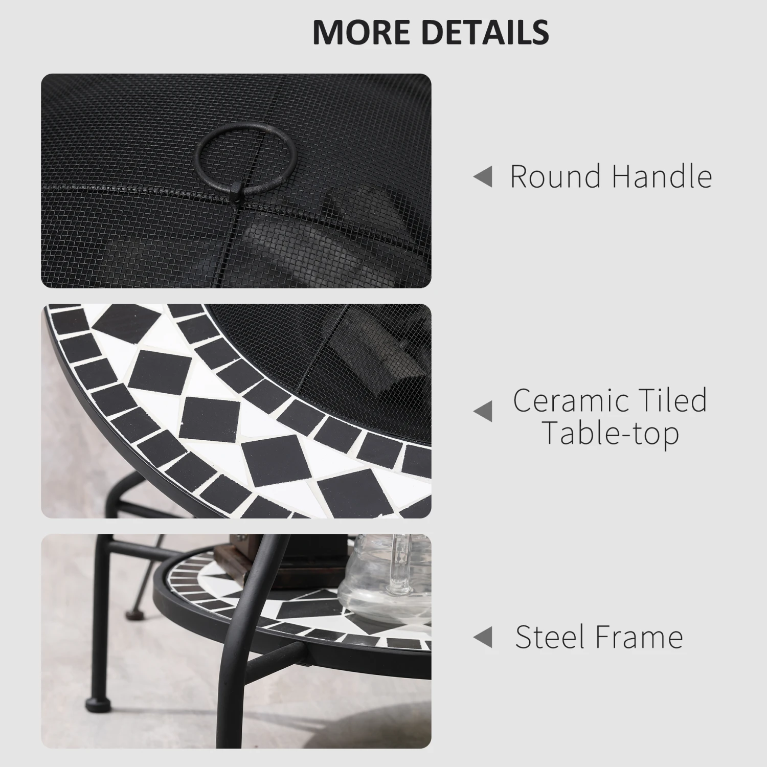 - – Outdoor-ready steel and lovely mosaic tile ceramic top