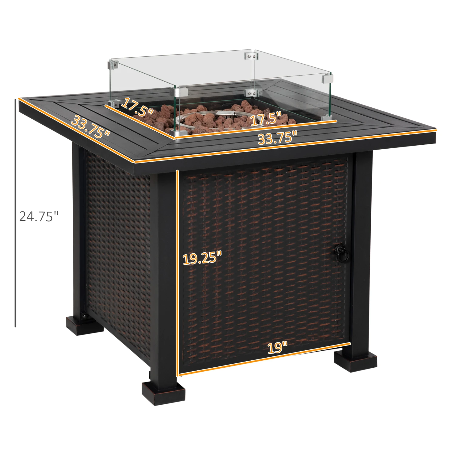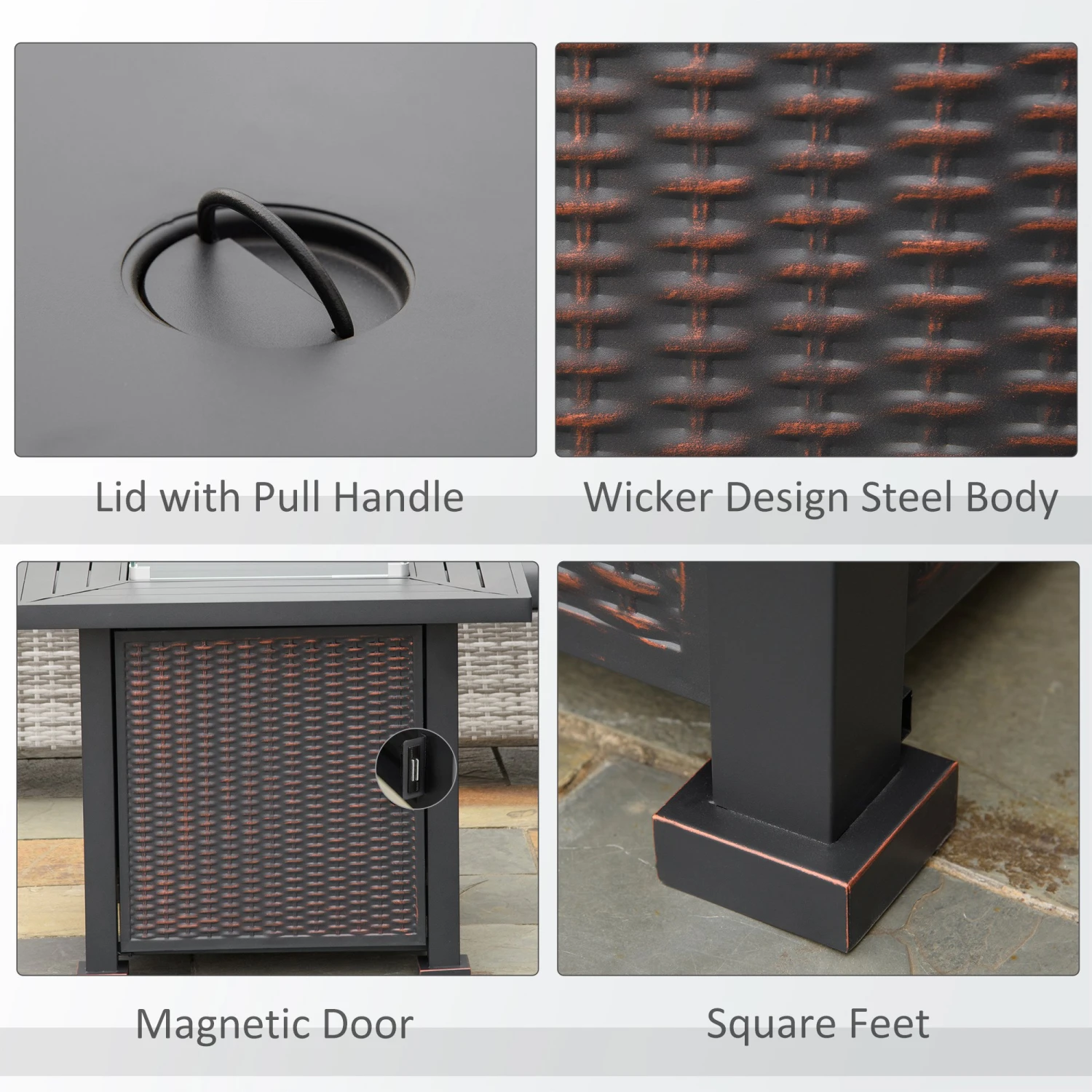 Enjoy the ultimate backyard ambiance year-round with this cozy and functional outdoor furniture from Outsunny that has both a fire pit and dining table together. It features a classic wicker design base that cleverly conceals the propane tank inside. Complete with a 50,000 BTU CSA-certified burner, you can enjoy all the pleasures of a charming flame without worrying about messy ashes. Whether it’s on a porch, patio, or in your garden, our patio fire pit table makes a classy addition to your home.