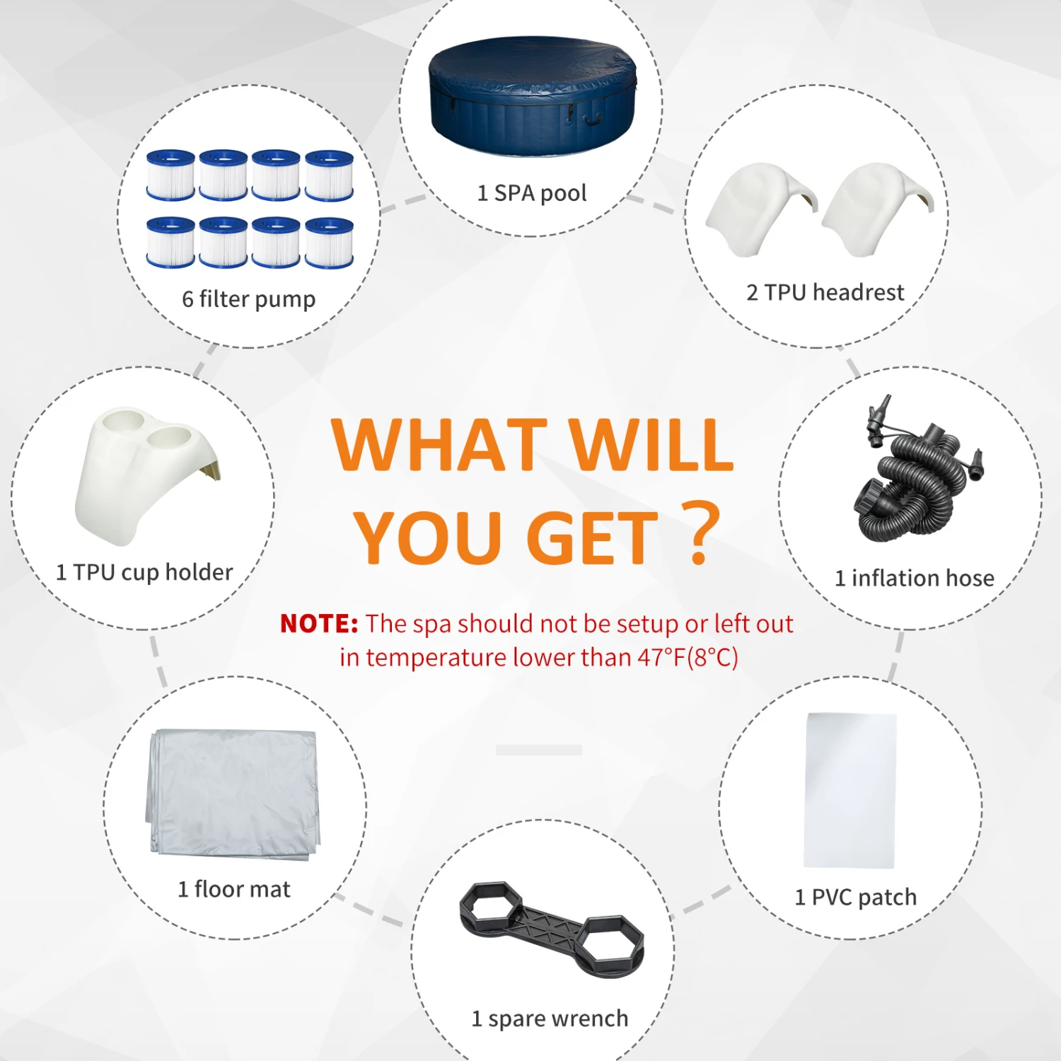 - – NOTE: The spa should not be setup or left out in temperature lower than 47°F(8℃)