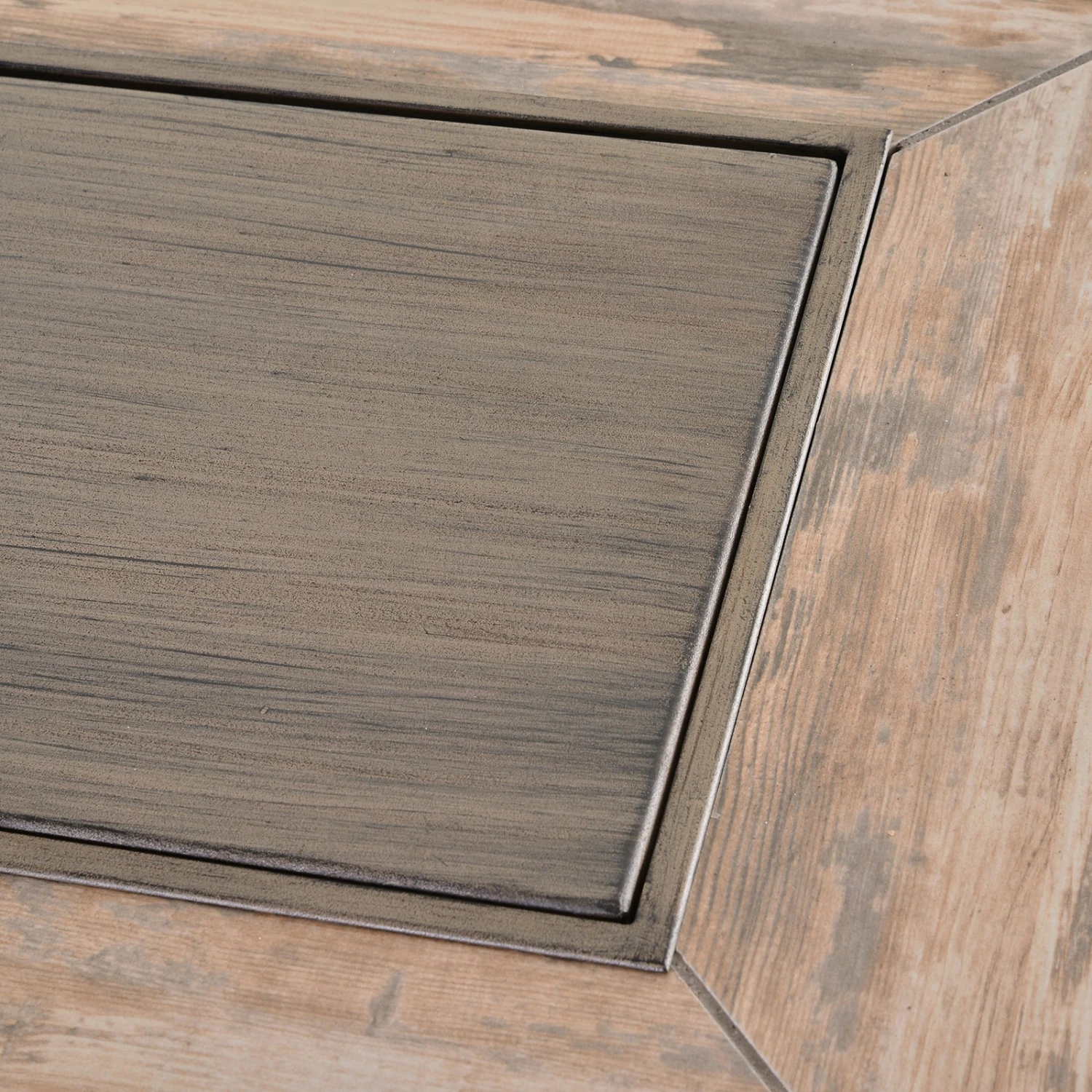 - – Features rustic style tile top with realistic wood grain pattern