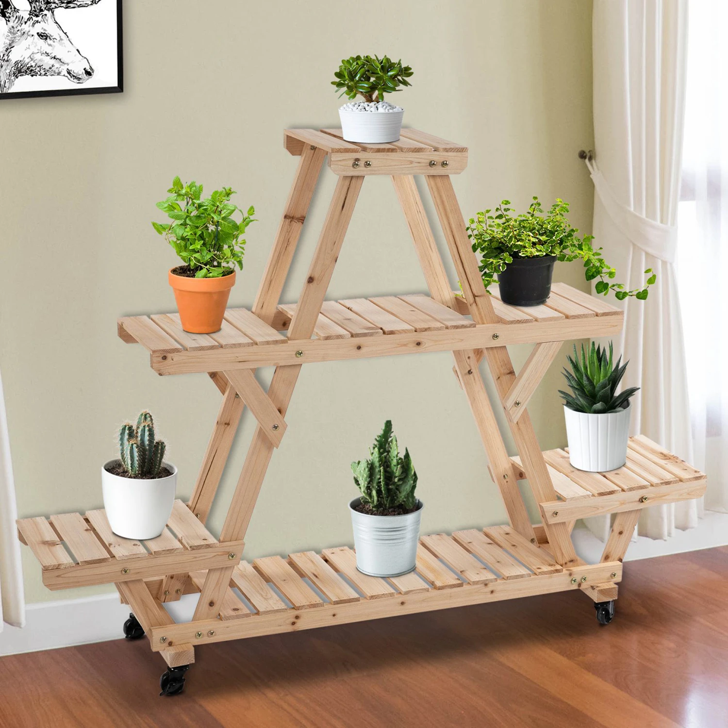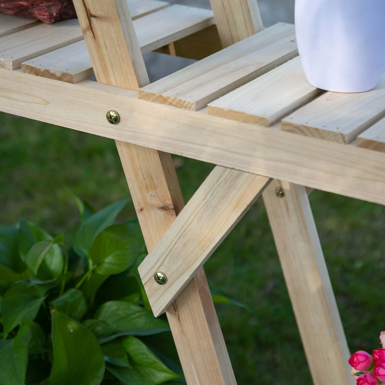 This wooden plant stand from Outsunny can be a wonderful way to decorate your house with green, leafy friends! Made with solid fir wood, our plant shelf is stable and durable for many growing cycles to come. This unique wooden plant display provides ample space to show off your flowers as you can move it anywhere as it has four universal wheels (or take them off if you want your flower stand to stay in place). You can use this flower stand as an indoor storage display rack to add some green in the house or use it outdoors to have your plants freely breathe.