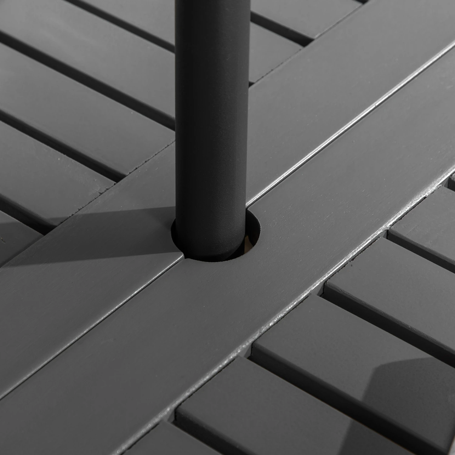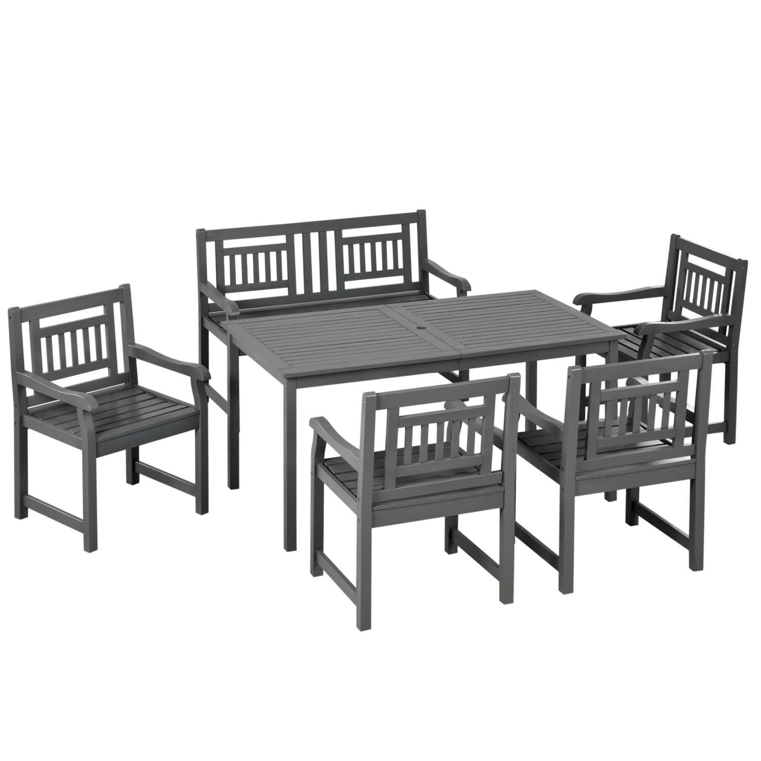 Whether you plan on eating dinner outside with your family, love to put on picnics, or need room for guests, Outsunny offers enough seats. Outsunny has a six-seat patio dining set that offers a lot of seating with a bench you can share with someone special. Each piece, including the chairs, bench, and table, is made with elegant poplar wood and offers a chic cutout design. An umbrella hole lets you keep cool, stopping sunburns with an umbrella of your choice. Get out, get comfy, get Outsunny.