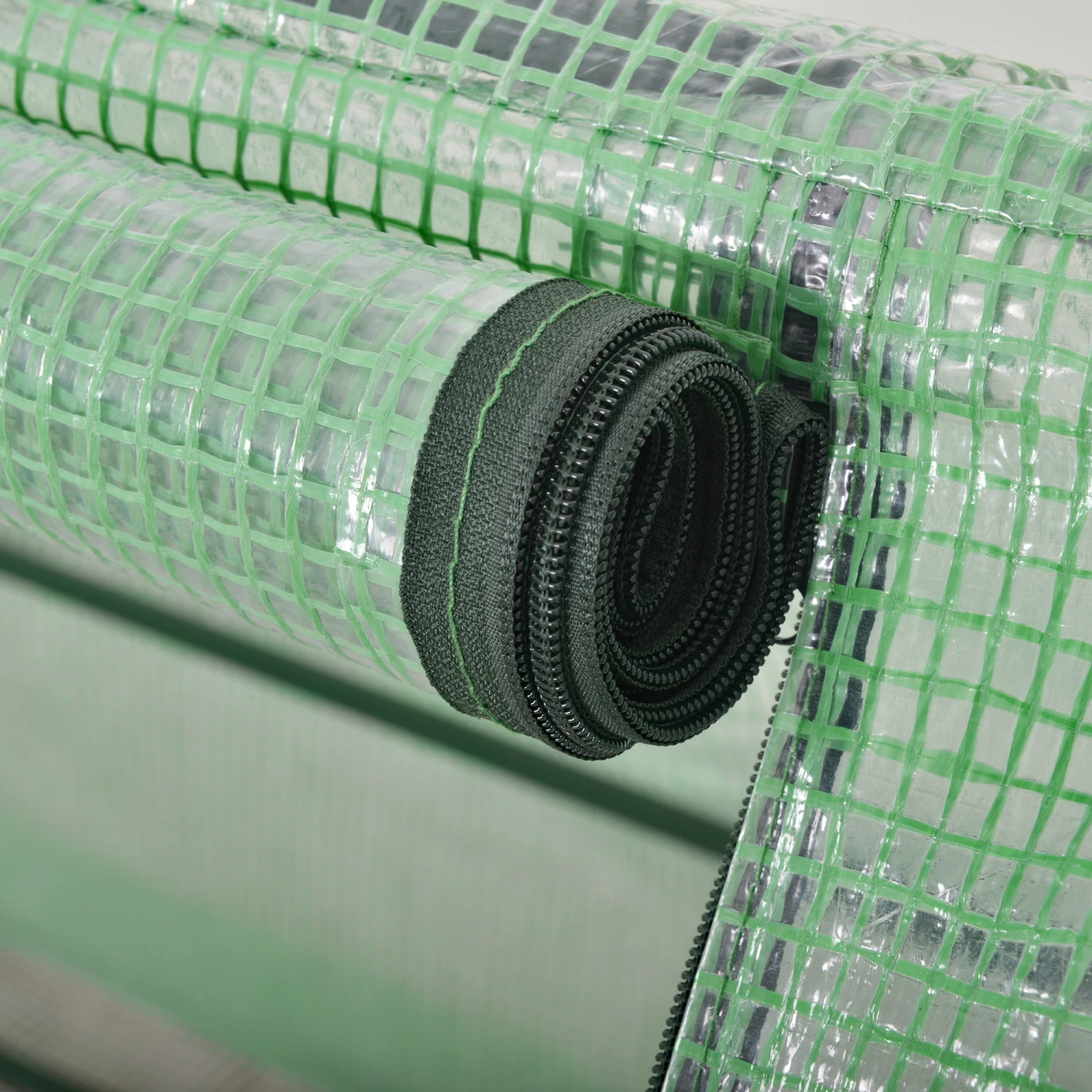 This Outsunny portable mini garden greenhouse is perfect for the home gardening enthusiast looking for a way to stay in the soil all year round! The frame and double covers of the plant nursery will keep your plants, vegetables more secure than on their own. The windows with interior netting ensure excellent ventilation for your unit, while a convenient roll-up door provides easy access. Our Outsunny greenhouse is the ideal solution for keeping your plants healthy throughout the year.