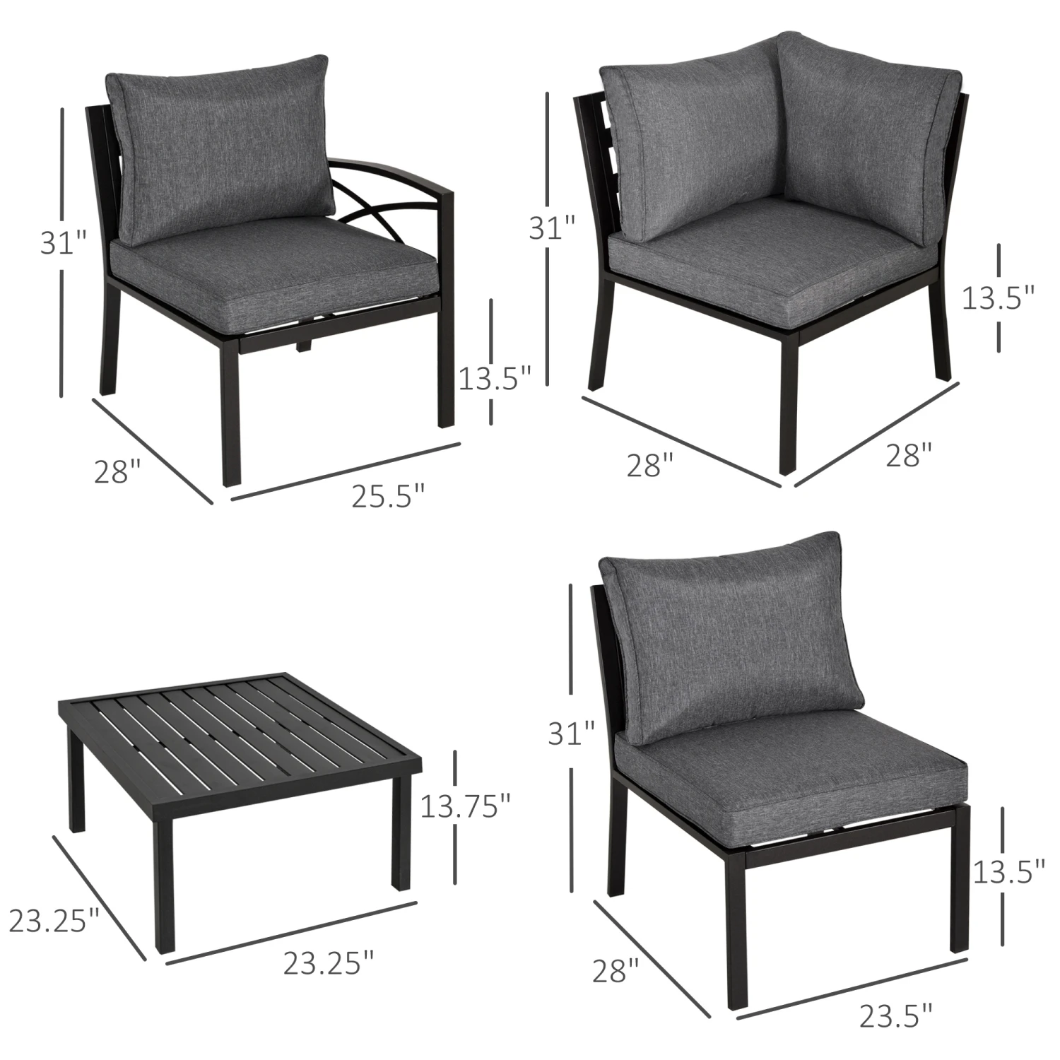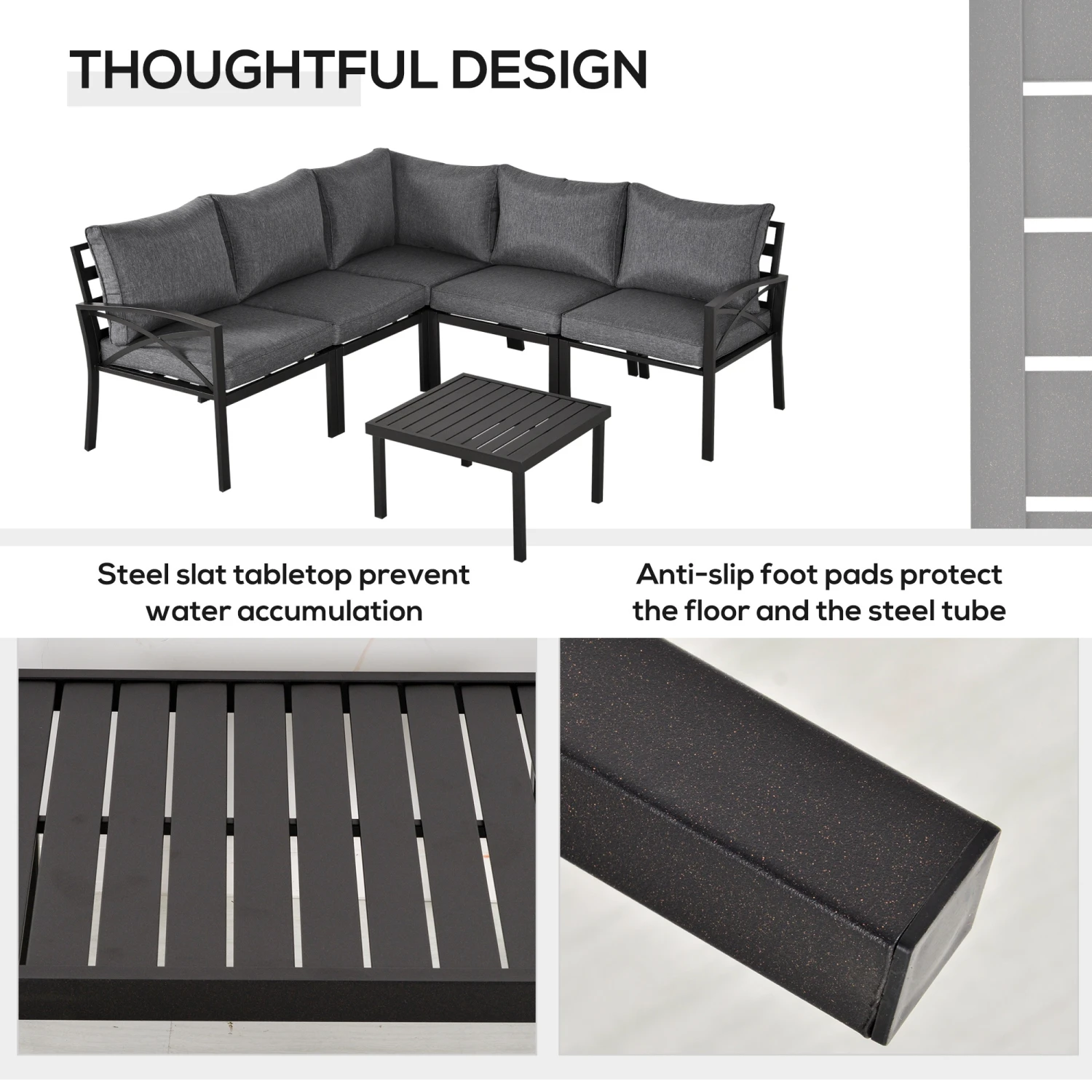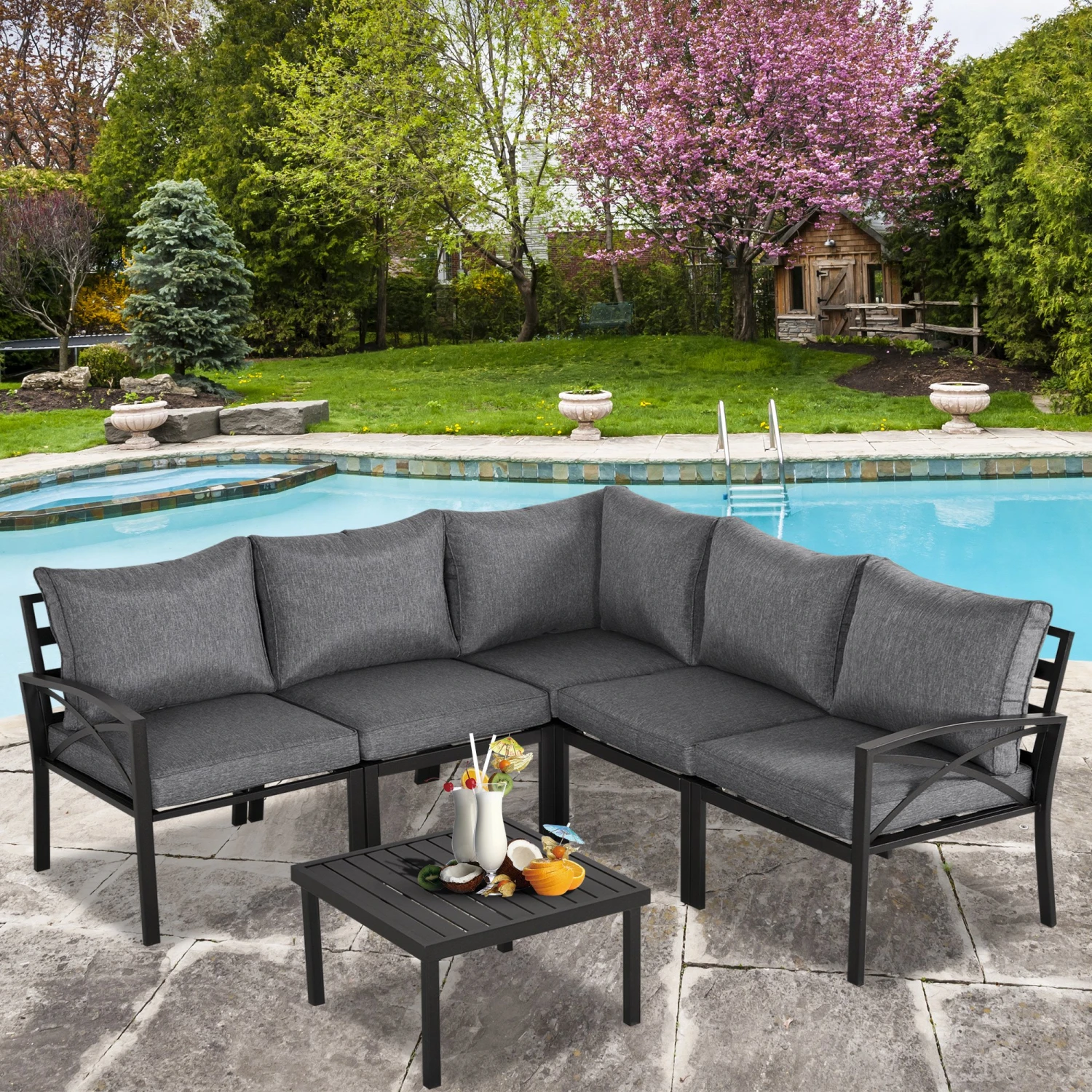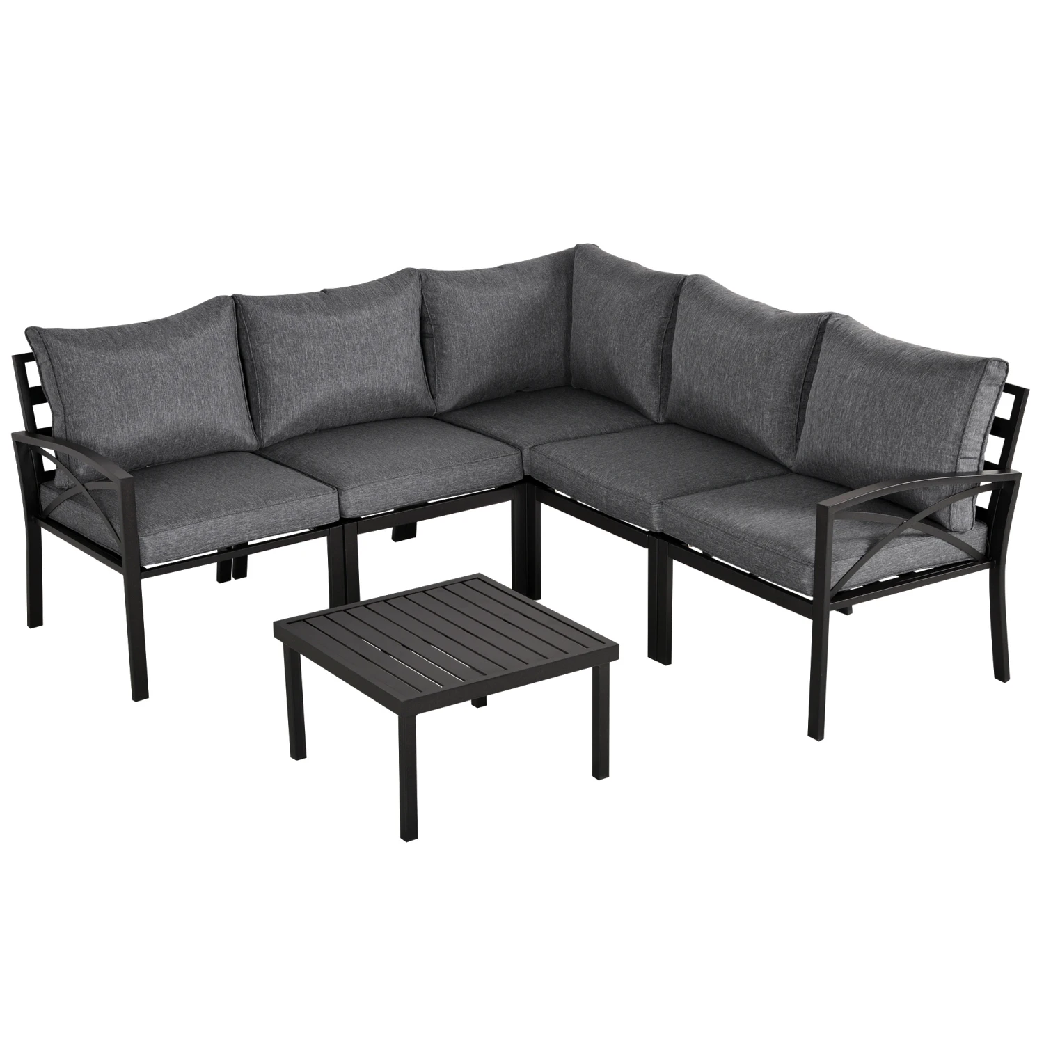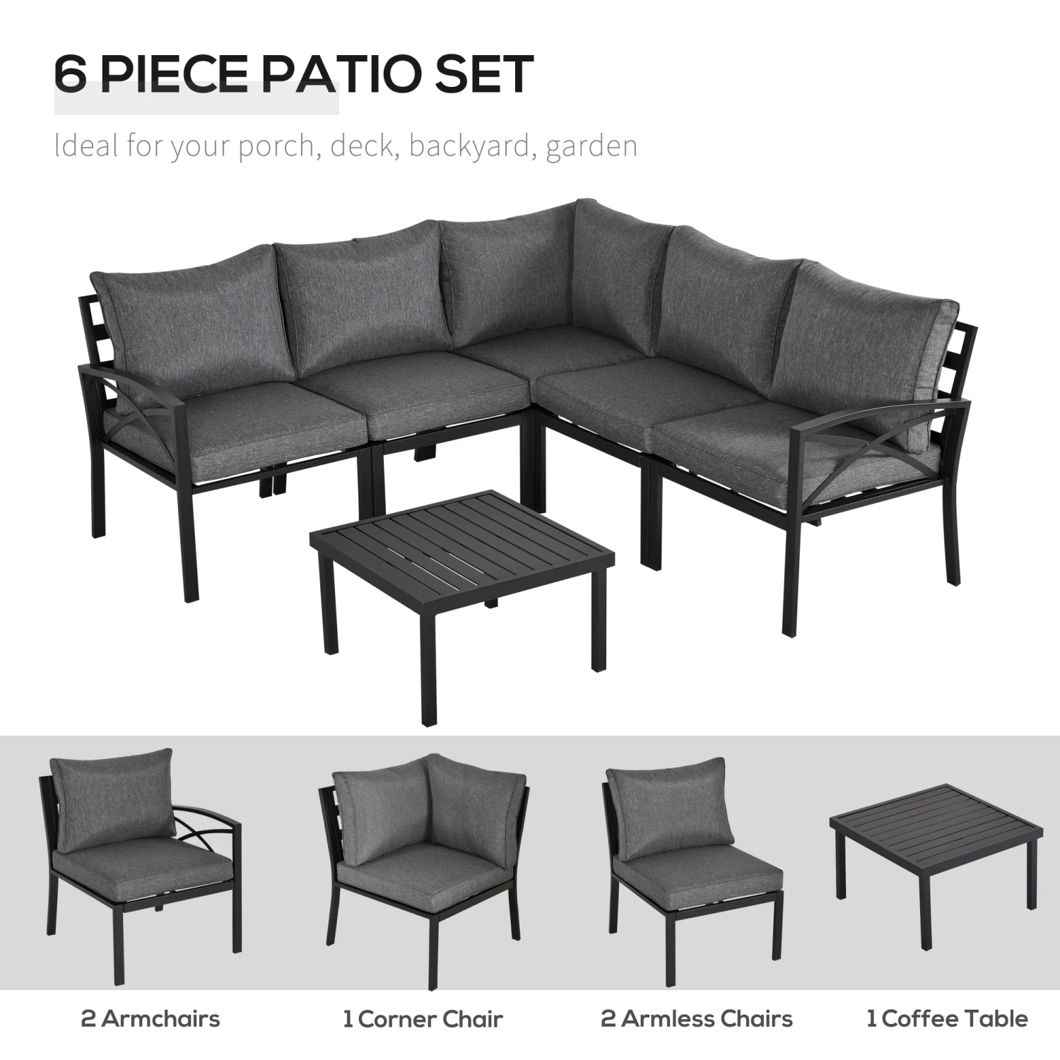 Never again worry about limited seating space in your outdoor areas! Our Outsunny 6-piece patio furniture set provides you with plenty of room for fun outdoor conversations with your guests. This wood furniture set includes 2 single armchairs, 2 armless chairs, 1 corner chairs, and 1 coffee table. The comfy backrest and seat cushions of each sectional guarantees comfortable seating while chatting and relaxing. Being both stylish and functional, this outdoor patio set is a great addition to your backyard, garden, or balcony area. Easy assembly is required with all necessary hardware included.