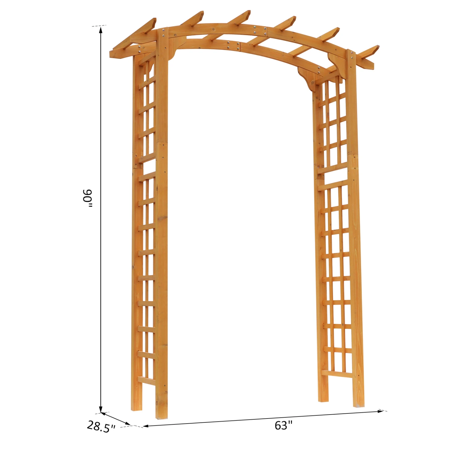The classic design of our Outsunny wooden arbor arch offers a no-stress way to add an elegant outdoor feature to your garden setting. Use it daily as an attractive archway for climbing vines hanging plants and fruits and vegetables or decorate it with flowers or balloons for weddings and other special events.