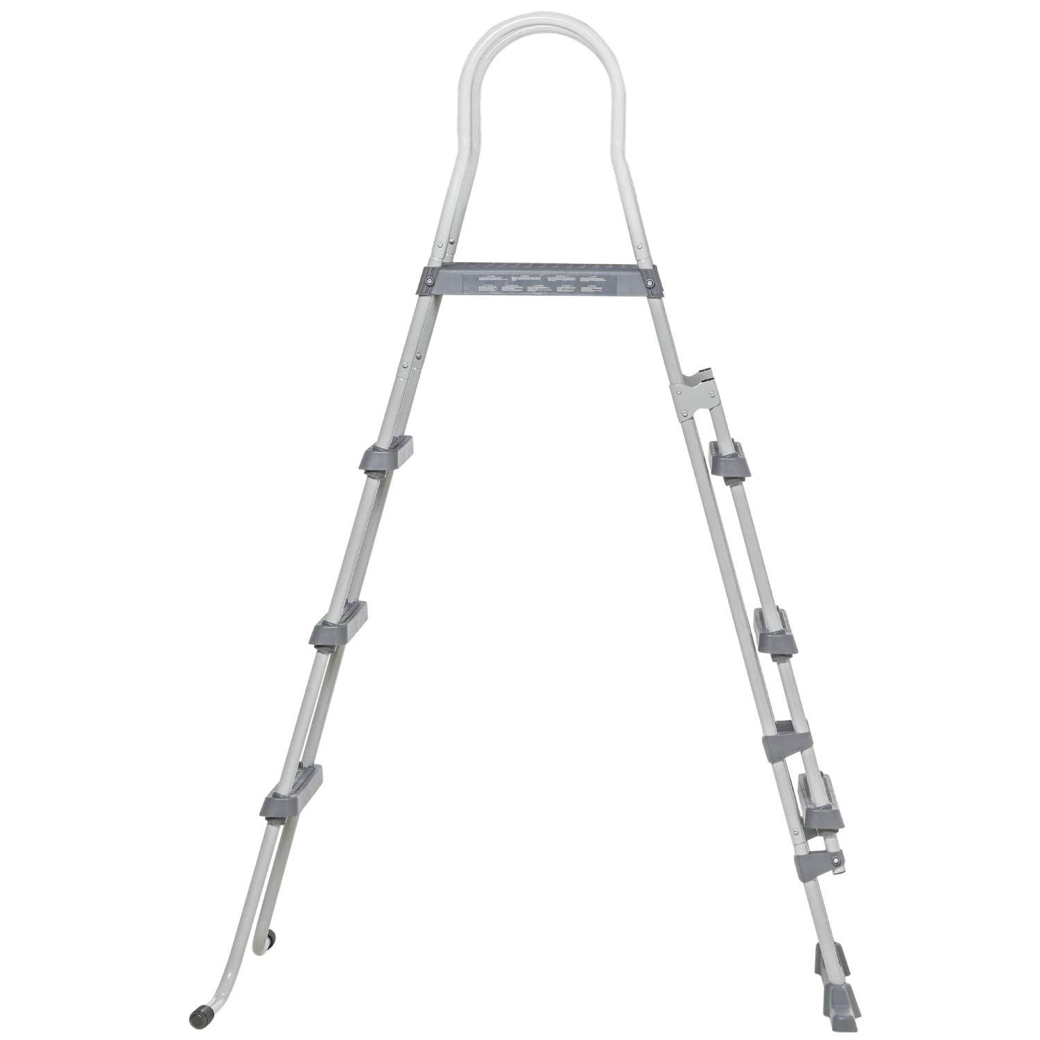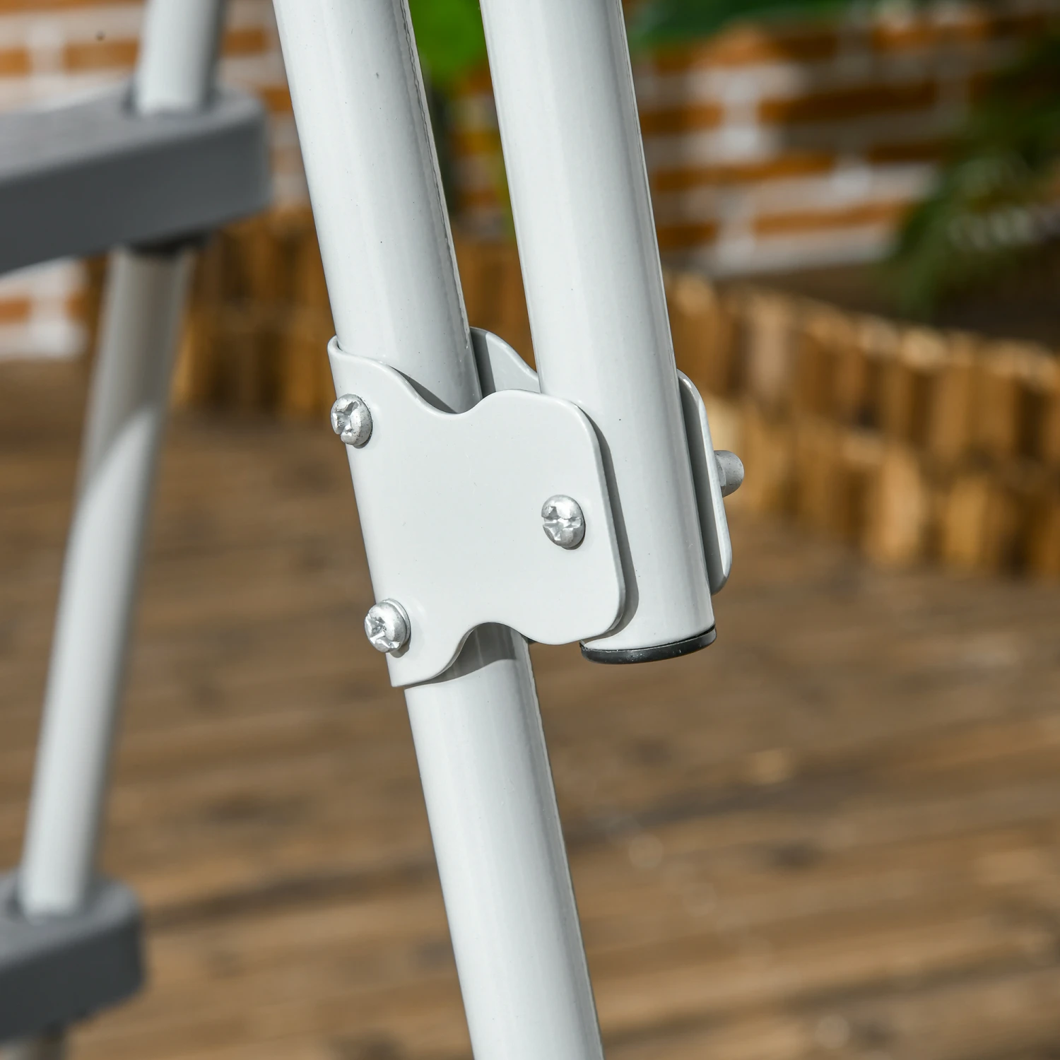 Outsunny is here to offer you and your family poolside safety and ease of entry. Designed for above-ground swimming pools up to 48″ deep, our steel ladder is double water protected with a powder-coated galvanized steel frame. The steps are textured for a good grip, and handrails on the side help you get in the pool with less likeliness that you’ll slip. When you’re away, make sure it’s safe for children to play, when you lock our ladder up and away. Get out, get safe, get Outsunny.