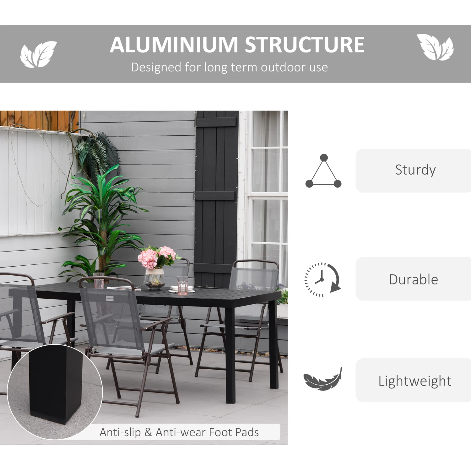 Serve dinner and seat eight with Outsunny. Placed on the patio, porch, poolside, or any other outdoor area, this dining table is ready and able. Don’t cry over spilled milk. It’s made of HDPE, a material that offers the rustic style of wood with a water-safe design and wipe-clean surface. Serve eight with ample space and plenty of plates. Whether it’s dinner, drinks, afternoon tea, or coffee on the balcony, our garden table offers you the option. Get out, get comfy, get Outsunny.
