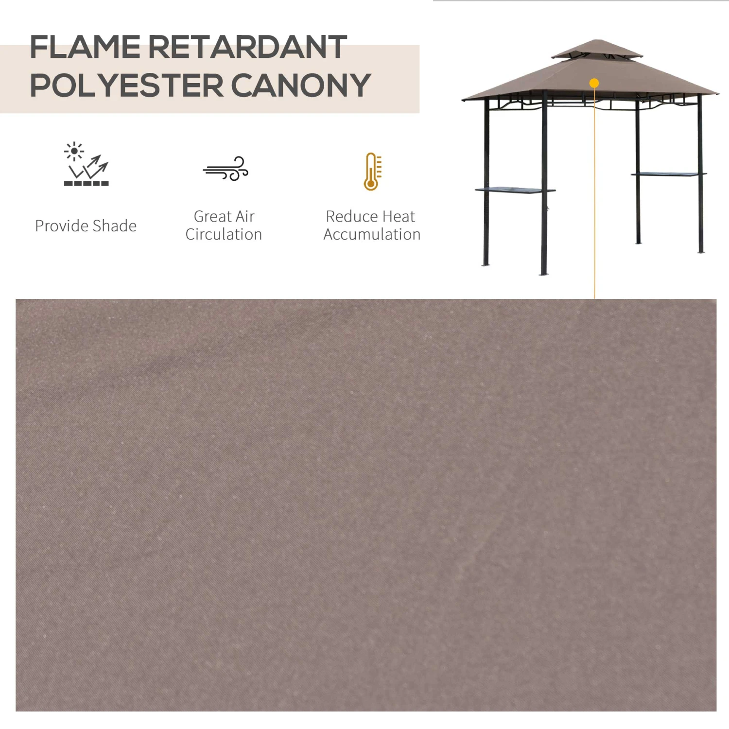 This canopy for outdoor grill will provide optimal shade while barbecuing on a hot summer day. The durable canopy protects you from harmful UV rays. Along with the steel frame, there are two mesh panels to put the food or tools. This grill shelter also comes with a bottle opener attached to the frame for you to enjoy your favourite beer. Spruce up your backyard with the Outsunny double-layer BBQ gazebo, which is perfect for outdoor, patio, garden, and more.