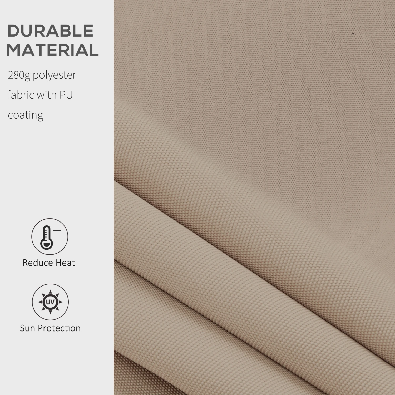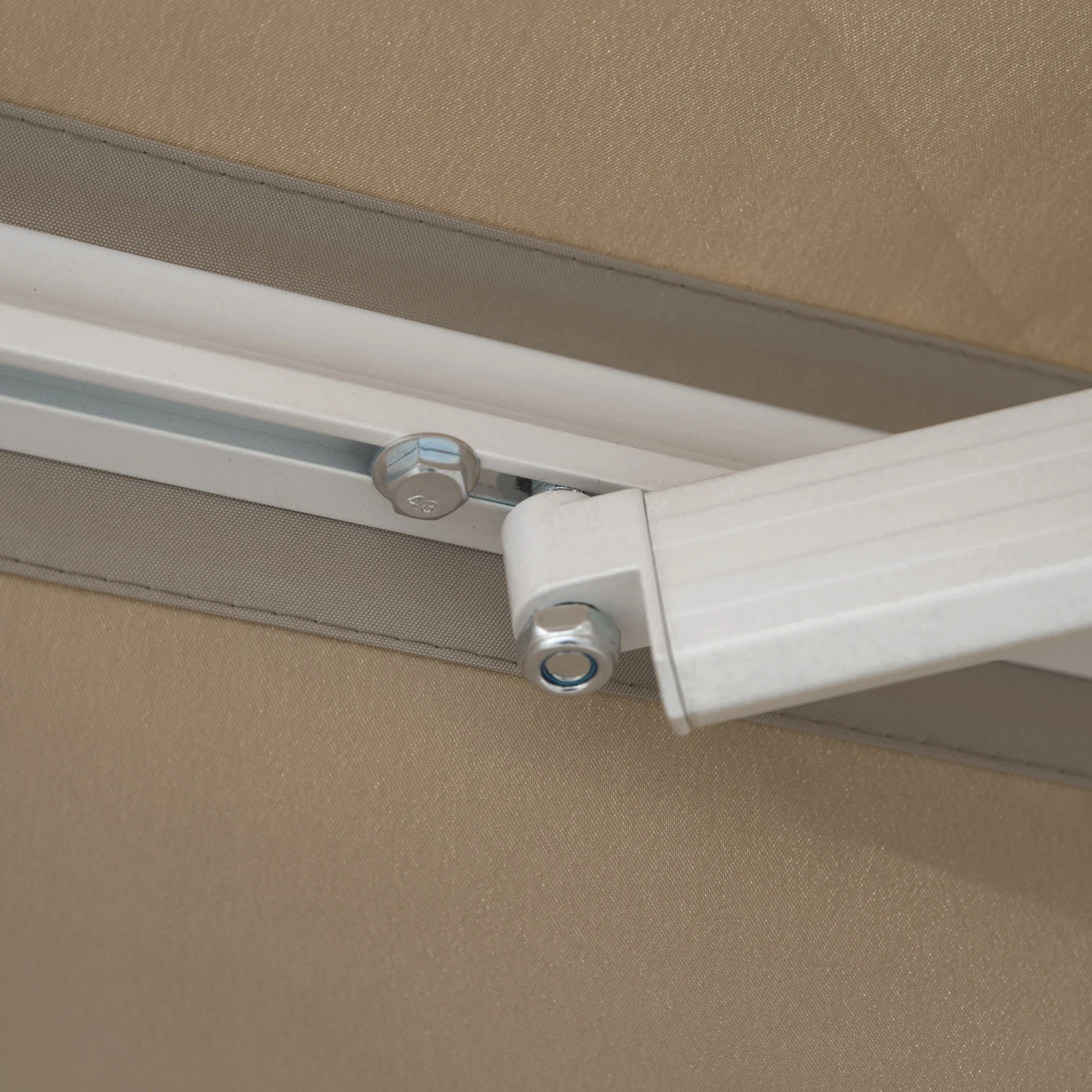 - – Polyester fabric supported by two retractable arms, reel, and a front support bar
