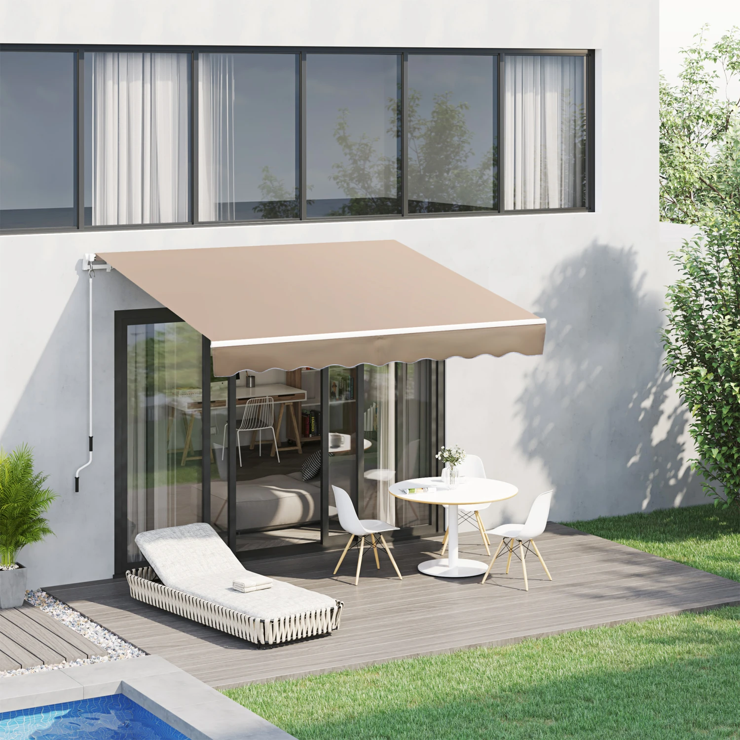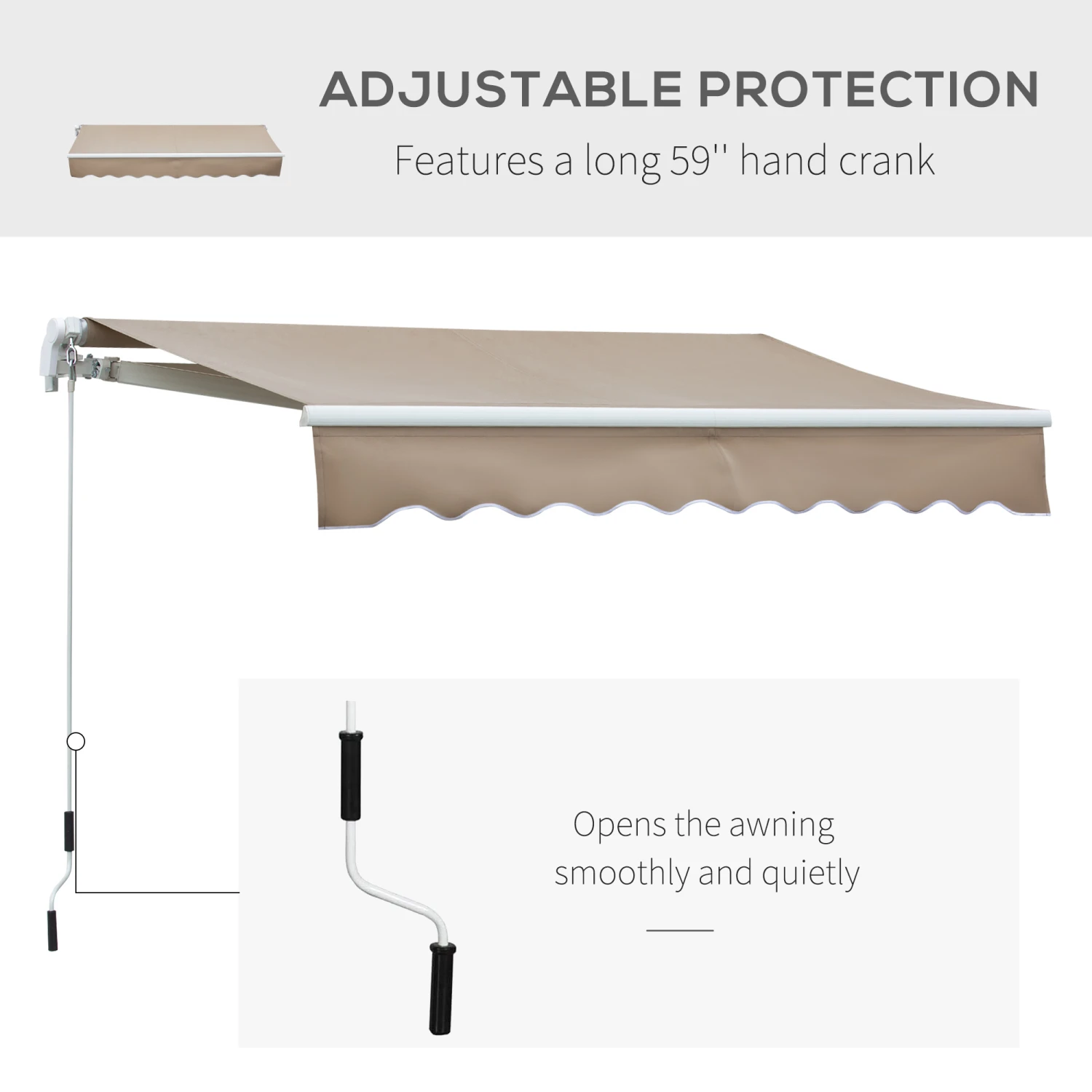 Designed to keep the sun off from you and your home, Outsunny retractable awnings for patio can do a lot more than provide shade. Exterior awnings like window awning can reduce the heat going into your home and help keep your home cooler. The aluminum and steel frame makes this deck awning solid and stable. The patio awnings from Outsunny is a great value that just can’t be beaten.