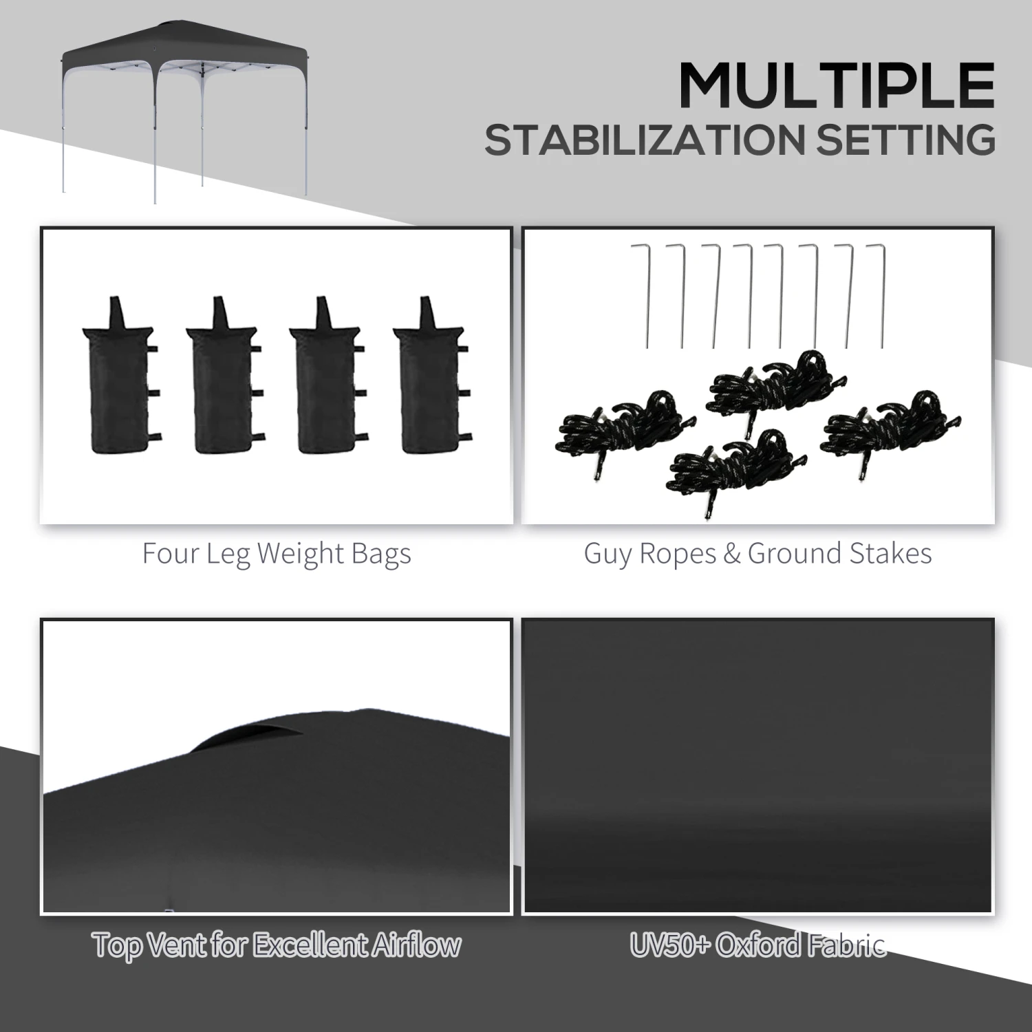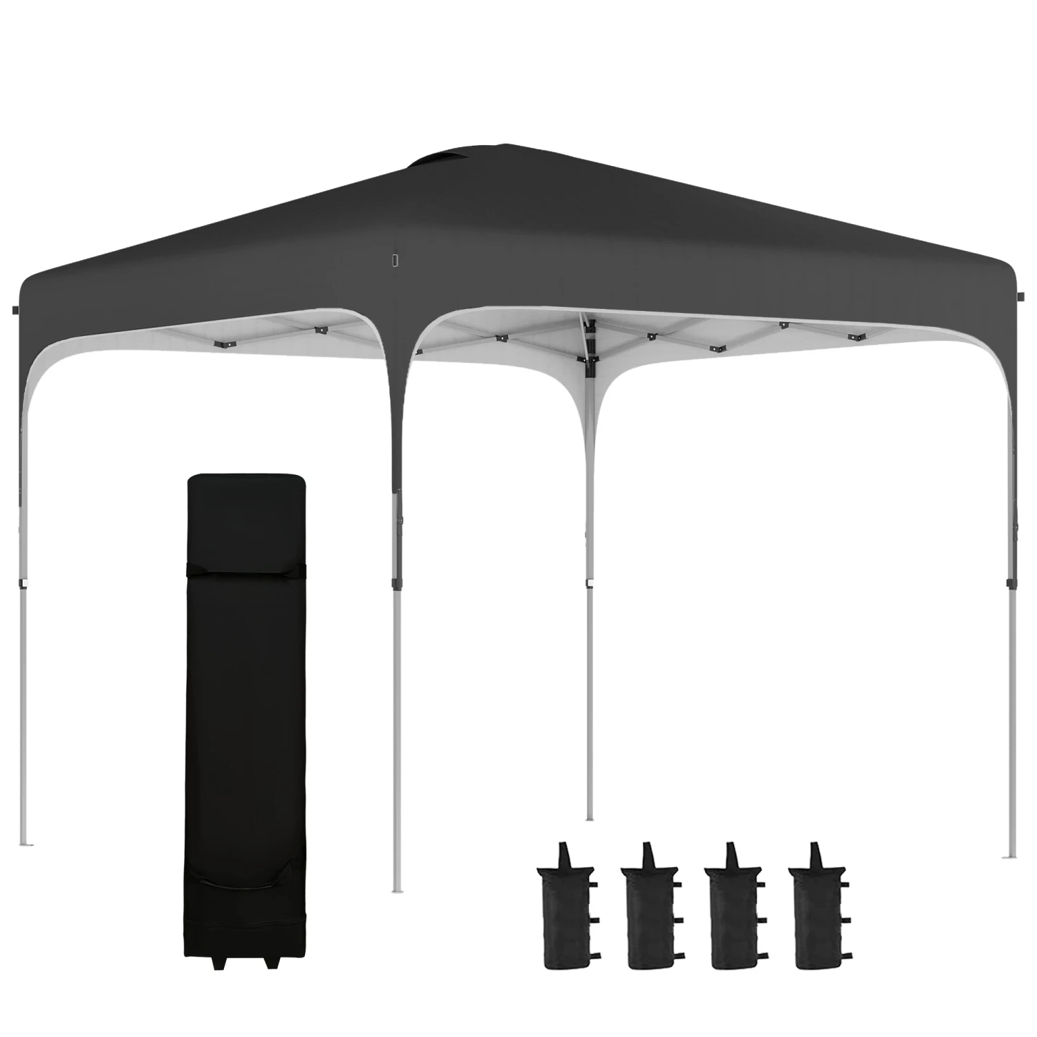 Our Outsunny folding outdoor canopy tent terrific for outdoor gatherings and camping trips. It’s simple to put up: the gazebo goes up in minutes. The ez up tent includes a powder-coated steel frame, and UV50+ Oxford fabric protects you from direct sunlight. The screened canopy comes with four leg weight bags and adds up to 44 lbs. in total when filled. After folding, store the outdoor canopy in the handy wheeled bag and transport it almost effortlessly.