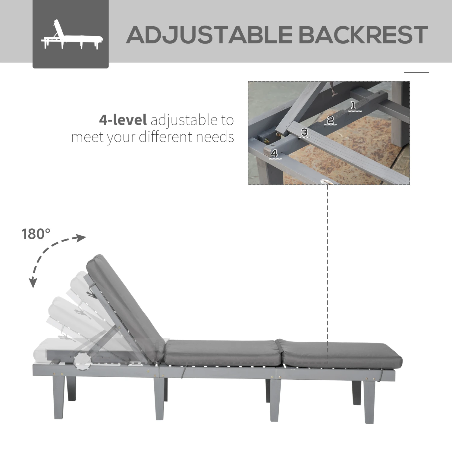 - – Reclining backrest lets you sit at the angle of your choice or even lay down